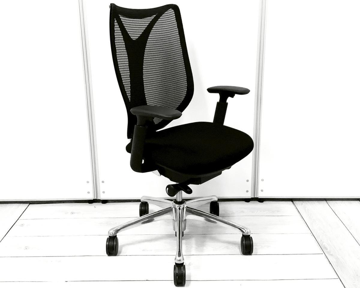 大人気!オカムラ製のメッシュチェアが入荷! 座面・背面が広めでしっかりしており、前傾機能が付いた高級チェアです! ■オカムラ/サブリナ/ブラック デザインアーム付 ホワイトボディ