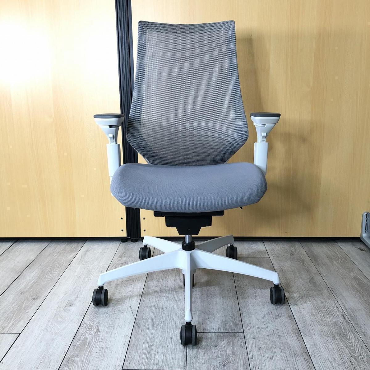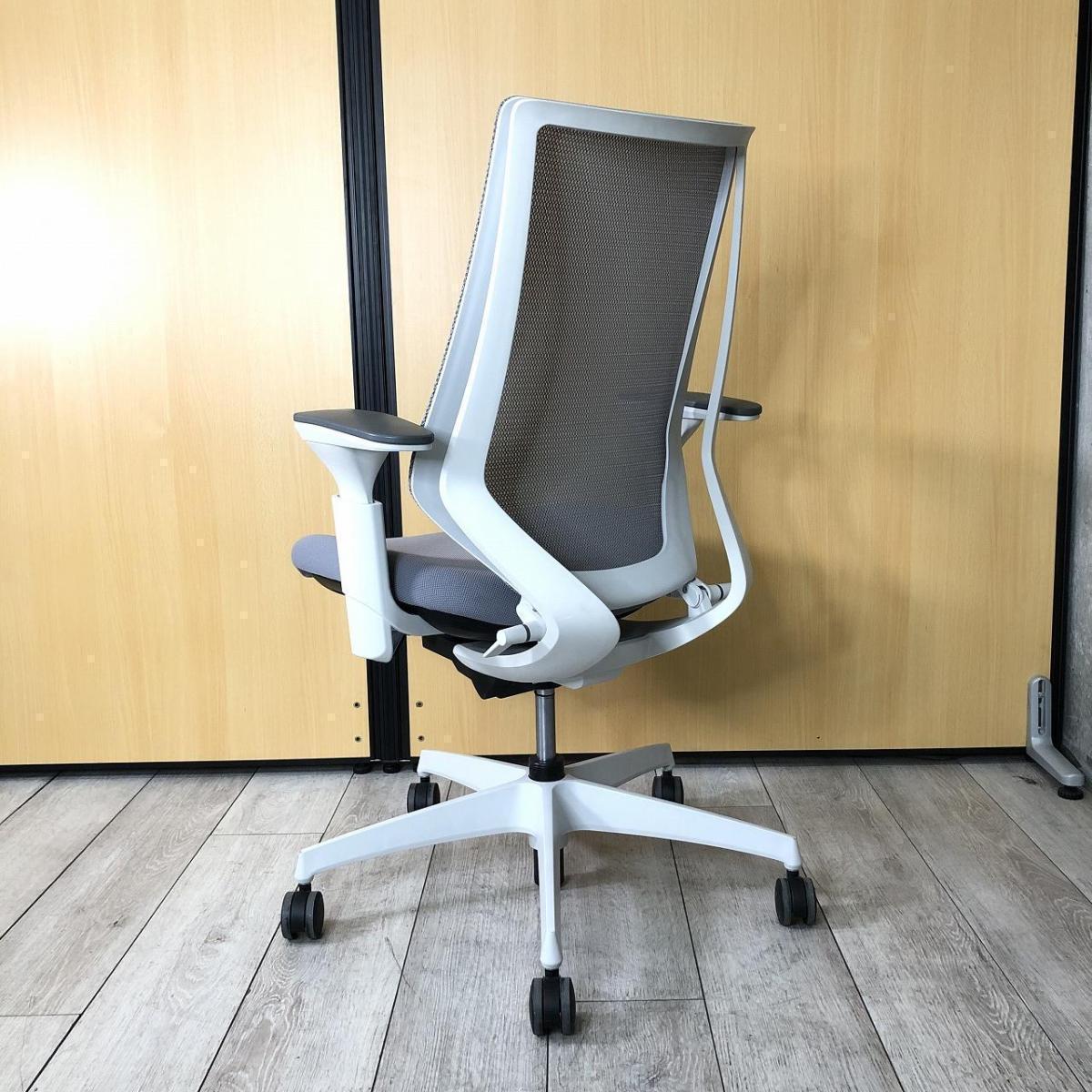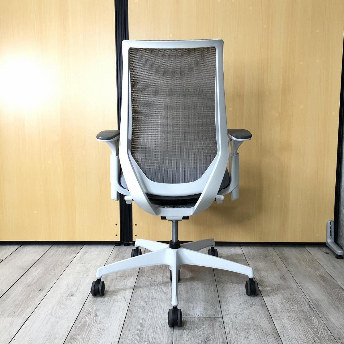 【二重フレーム構造がもたらすしなやかで美しい背もたれ機能!簡易操作で自分に合った姿勢をサポート!】 ■コクヨ/デュオラ(Duora)/ソフトグレー×ホワイトシェル 肘付き ハイバック 背面メッシュ ■可動肘