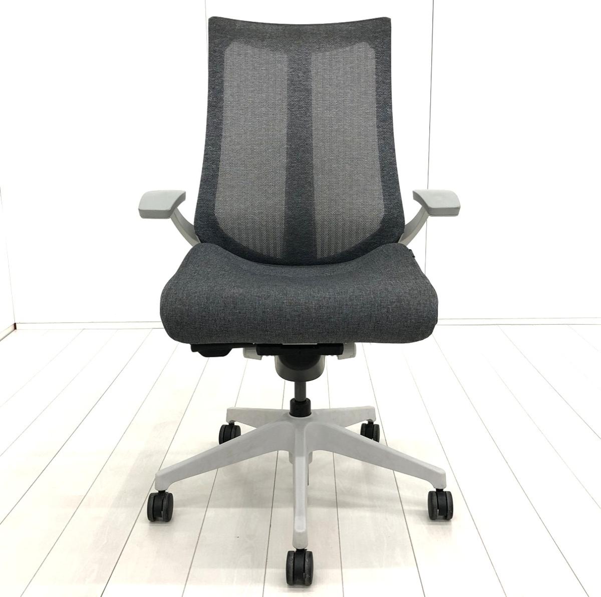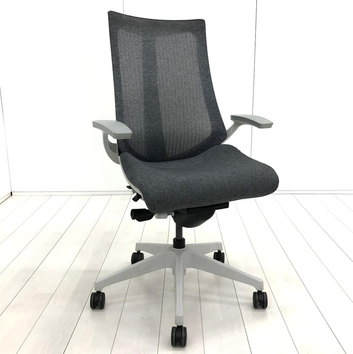 【座る姿勢や身体の動きにフレキシブルに対応!】■イトーキ アクトチェア 肘付 ダックグレー メッシュバック テクスチャード張地 ※肘擦れあり【ITOKI Act2】★- 川崎店