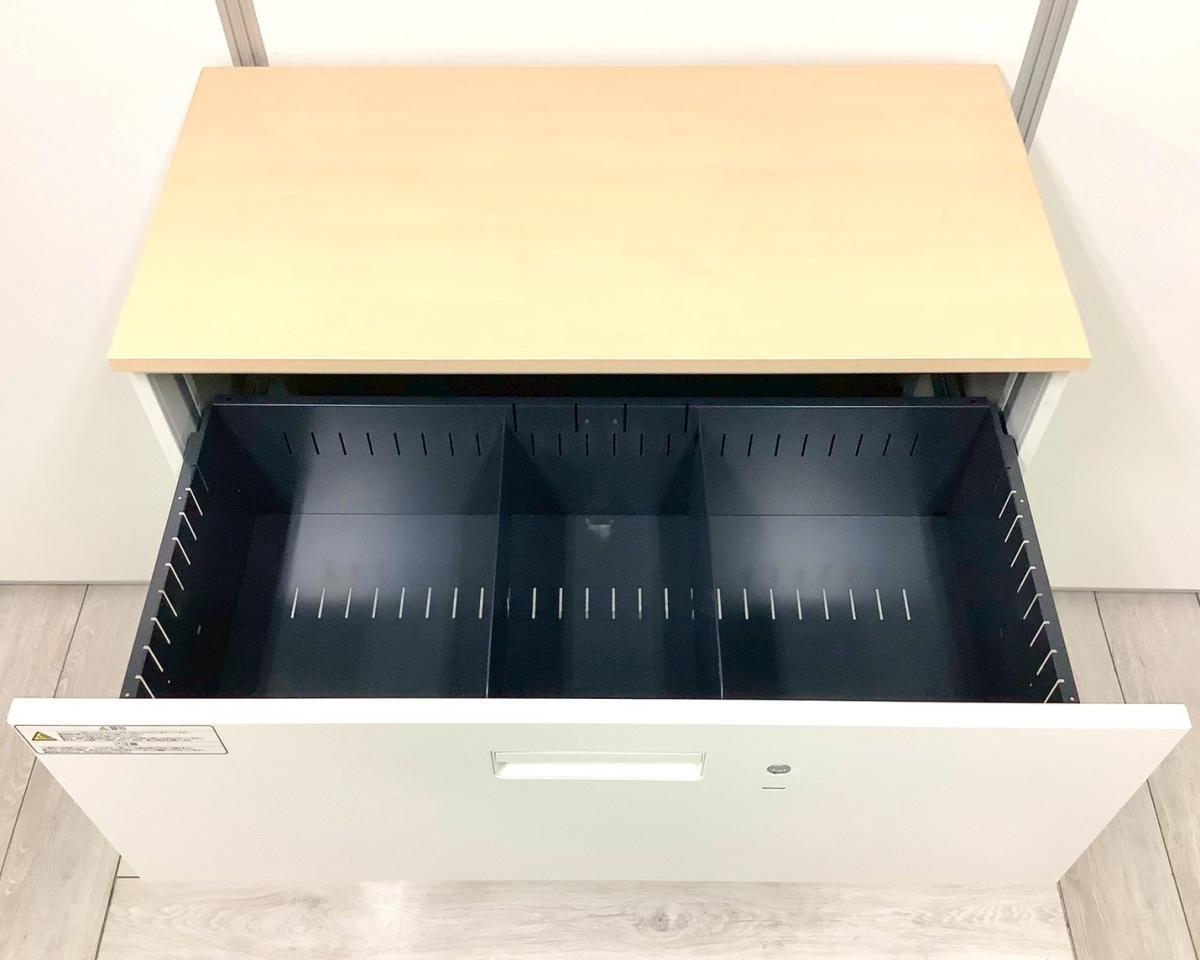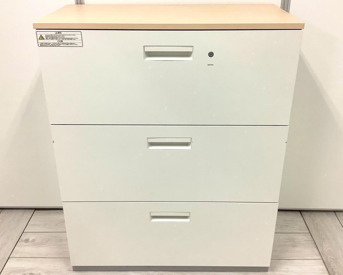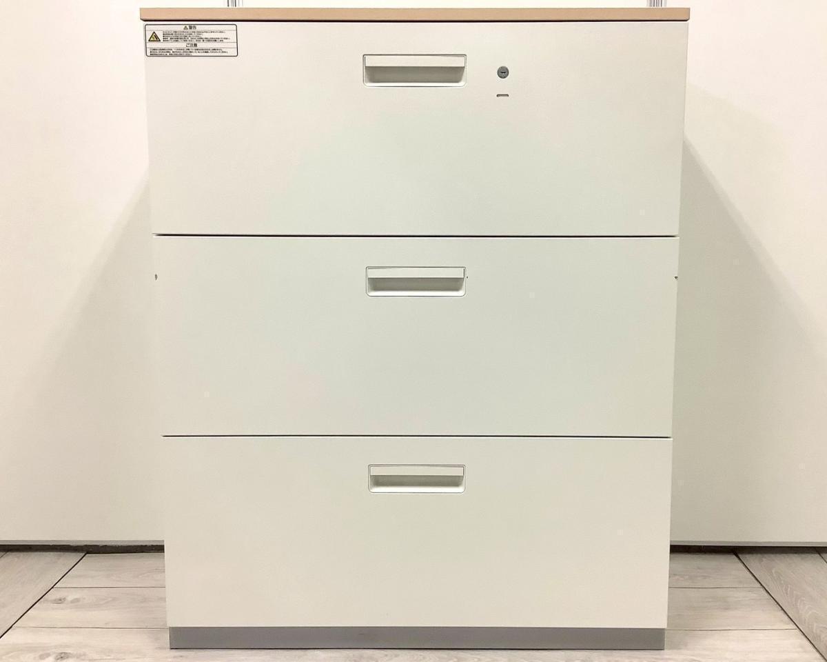 【在庫入替セール品!(本在庫限定価格)】【ナチュラル調天板が人気の引き出し式書庫!】■プラス(PLUS)製 L6シリーズ 3段ラテラル ローキャビネット H1120㎜ ■シリンダー錠 ■ホワイト×ナチュラル木目調天板付き 【弊社使用欄:A01035218】【ID】