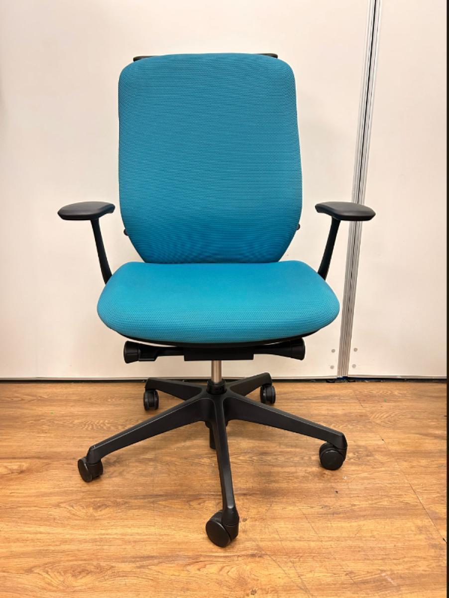 【新感覚のオフィスシーティング!】■オカムラ シルフィチェア 肘付 ブルーグリーン ※擦れ・ホツレ・破れ・色落ちがあるためお安く!【在庫入替セール品!】