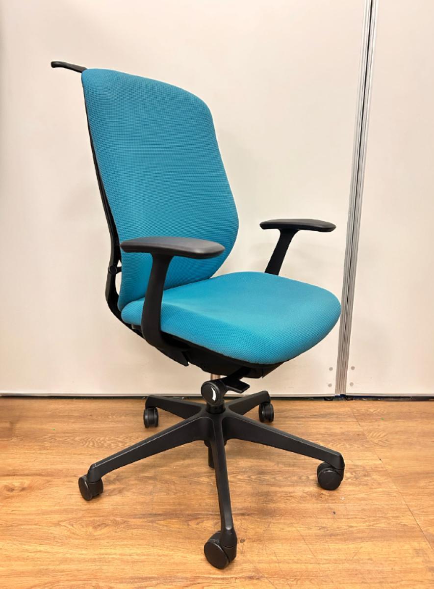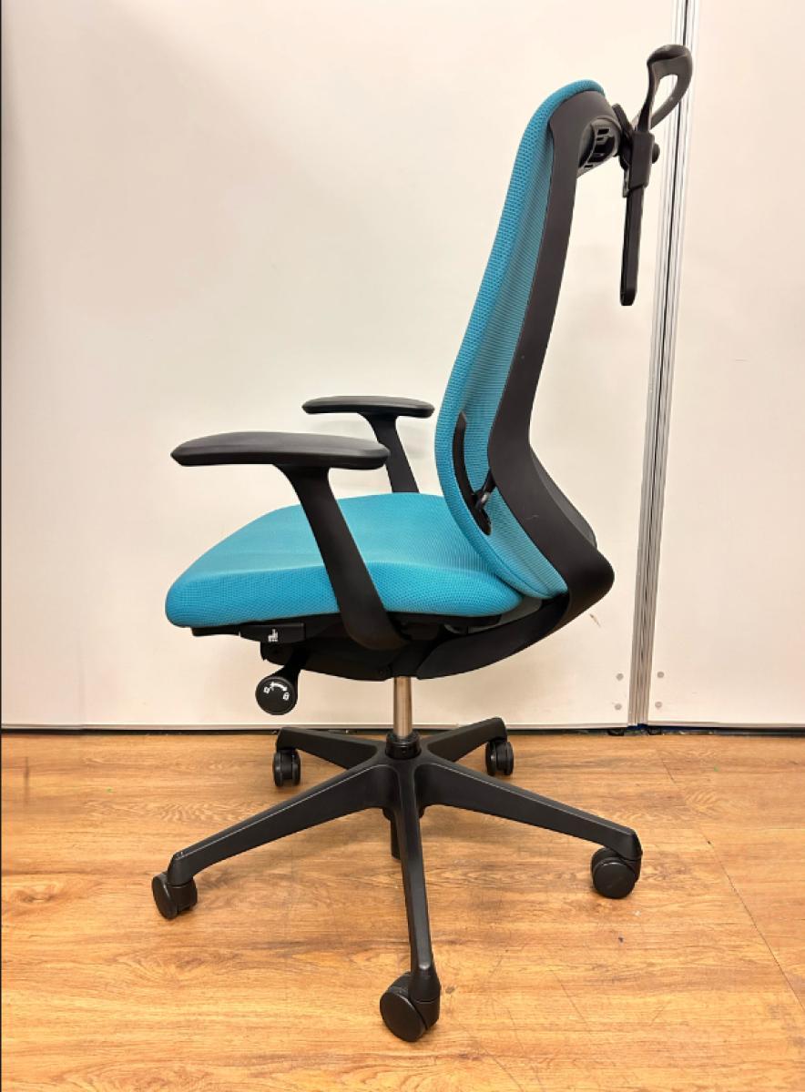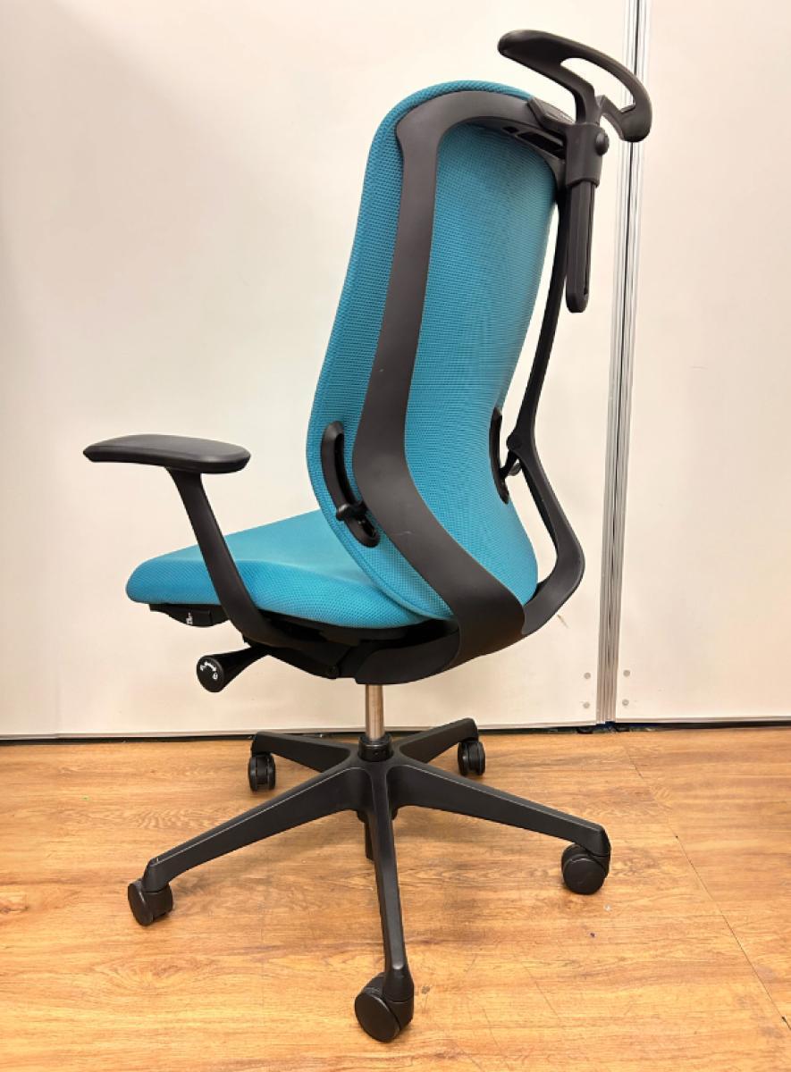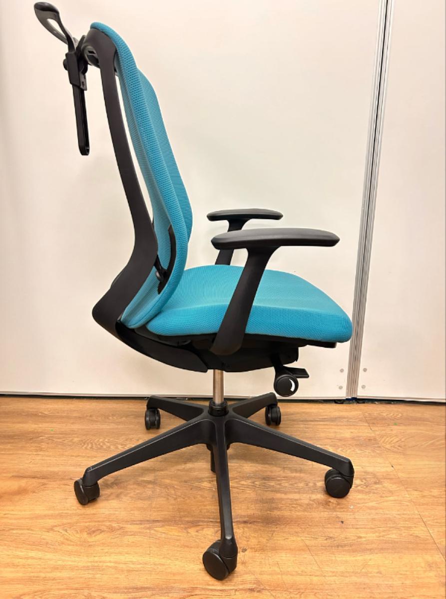 【いま人気のワーキングチェア!】■オカムラ シルフィーチェア 肘付 ブルーグリーン ヘッドレスト付 エクストラハイバック ■背のカーブを変えられる新感覚のオフィスシーティング!【Okamrua Sylphy】★