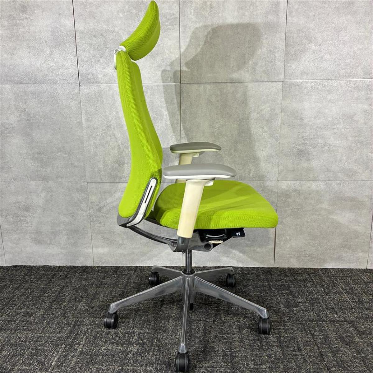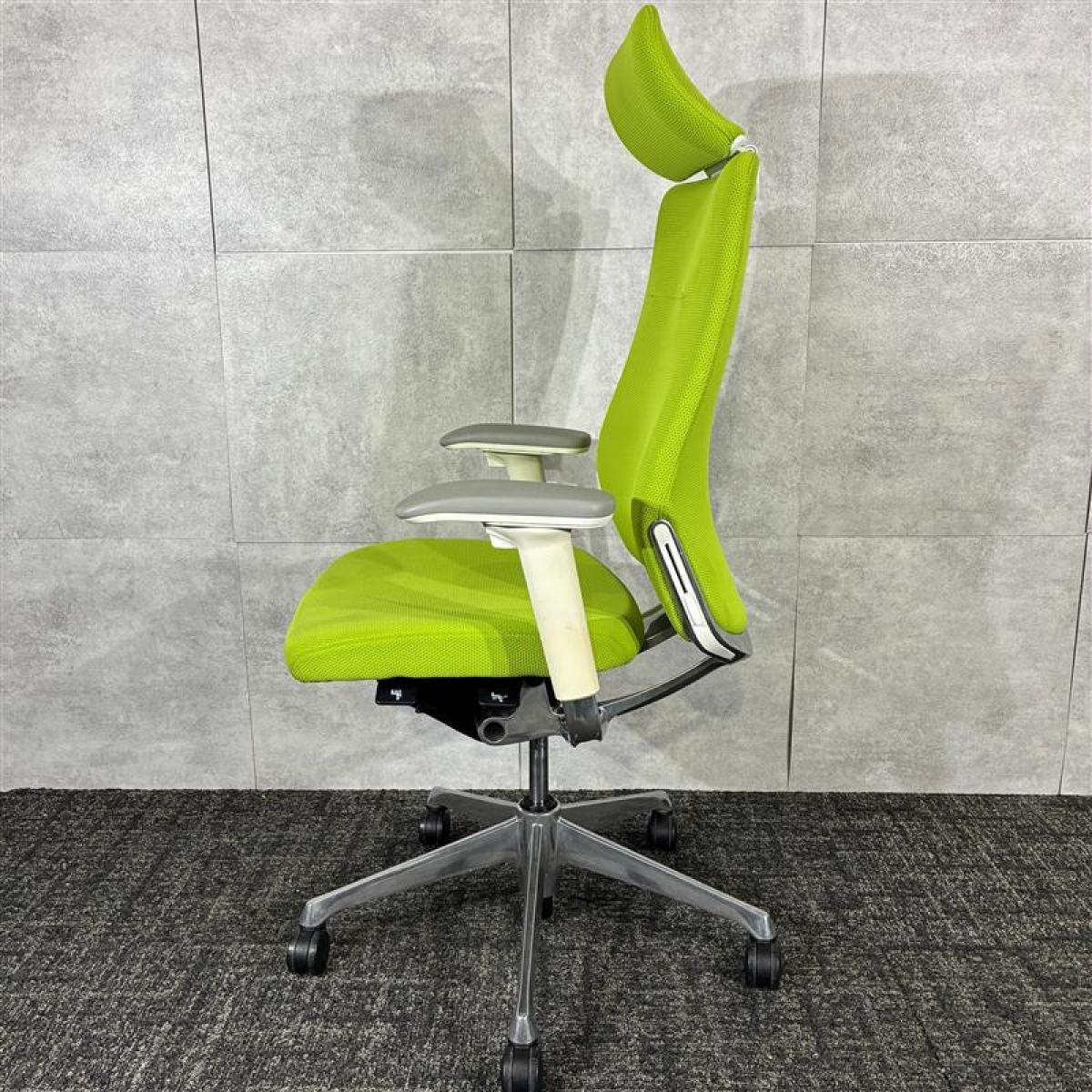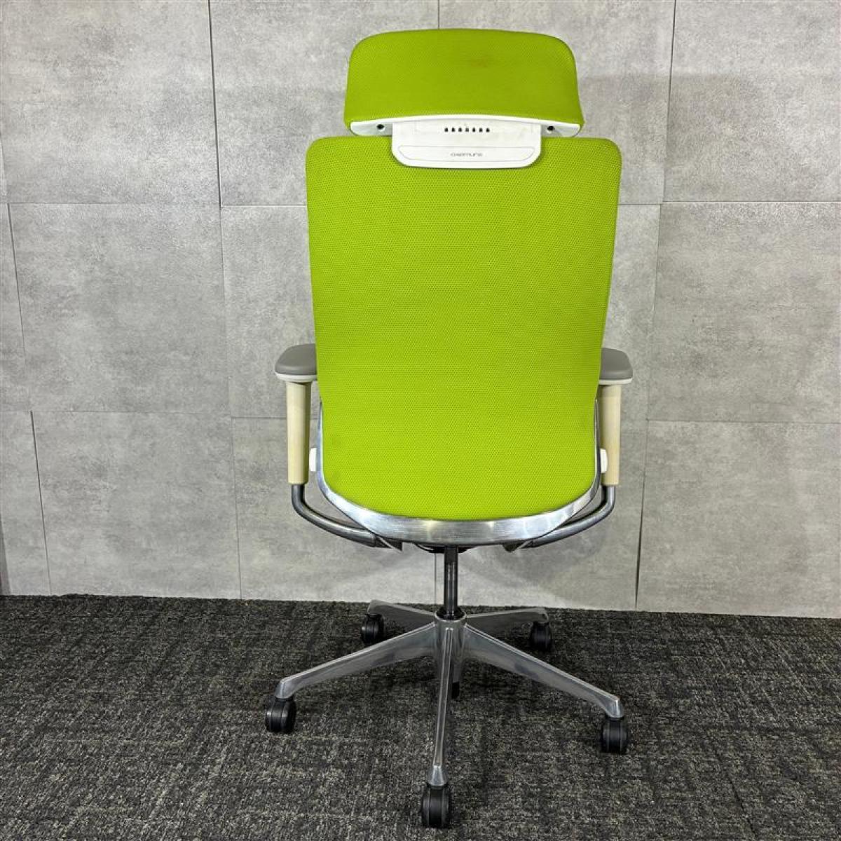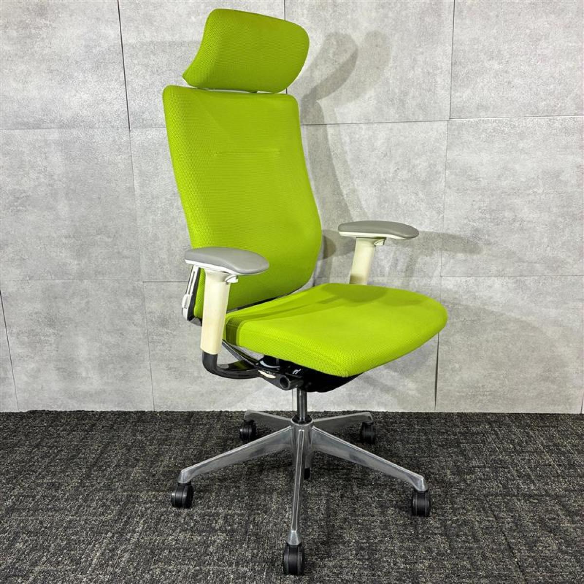 【シンプルなスタイリングに充実の機能を搭載したチェア!】■オカムラ(okamura)製 コーラルシリーズ ヘッド付背クッション ■可動肘 ■座面タイプ:クッション ■色:ライムグリーン