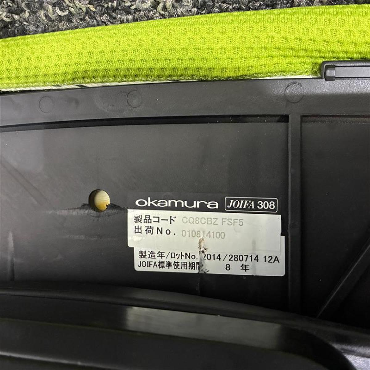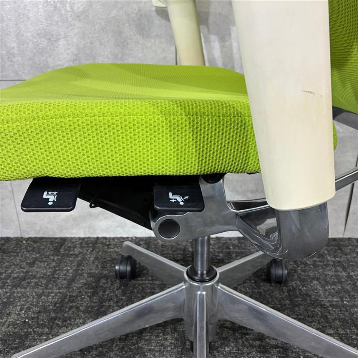 座り心地◎/おすすめ/大人気 ■オカムラ(okamura)製 コーラルシリーズ ■可動肘 ■背面・座面タイプ:クッション ■色:ライムグリーン