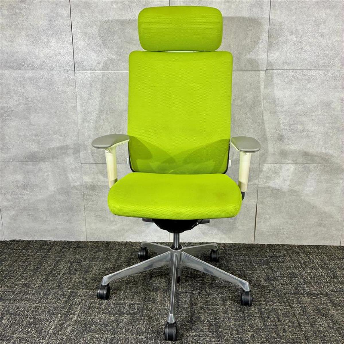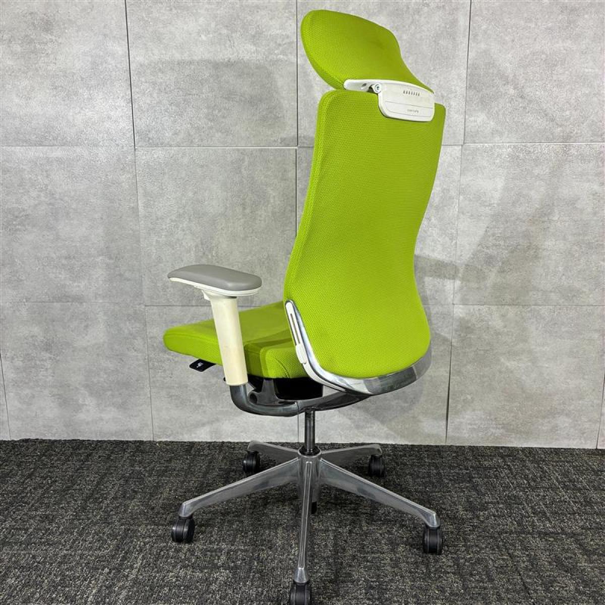 【シンプルなスタイリングに充実の機能を搭載したチェア!】■オカムラ(okamura)製 コーラルシリーズ ヘッド付背クッション ■可動肘 ■座面タイプ:クッション ■色:ライムグリーン