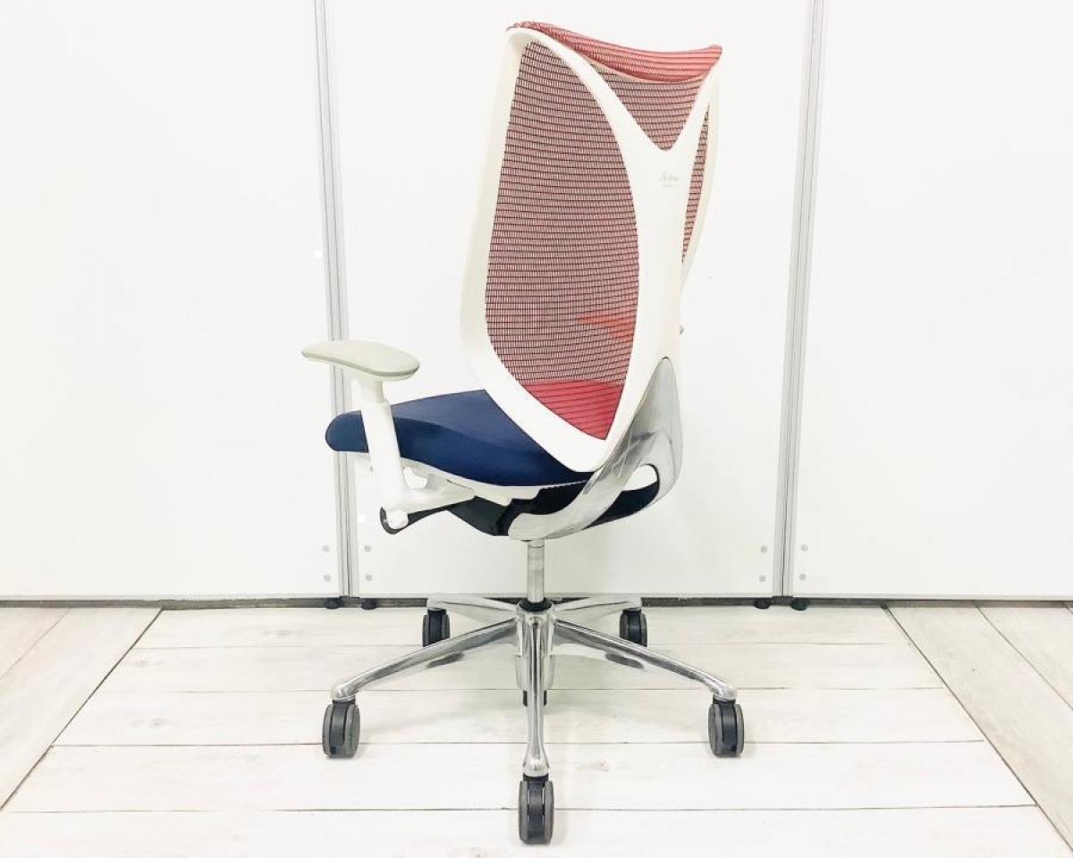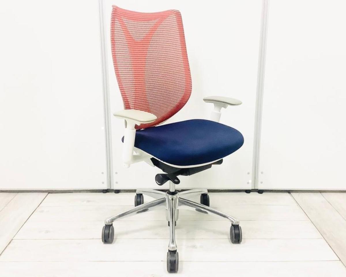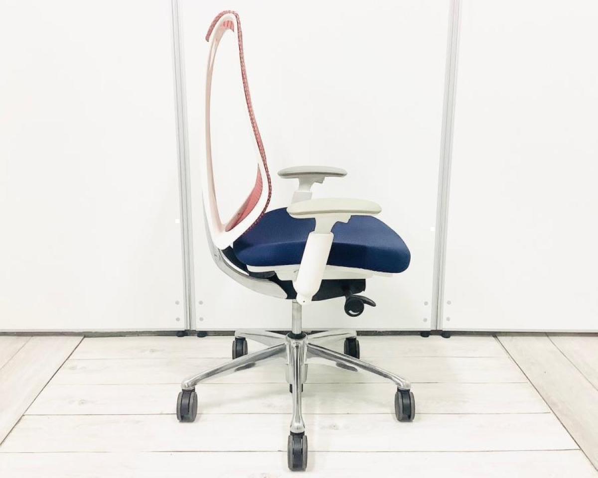 【在庫セール品・3脚限定】【T2】■Okamura/オカムラ ・Sabrina/サブリナ 肘付ハイバック ■座面:ダークブルー 背面:レッド ■デザインアーム(可動肘) ■ホワイトフレーム
