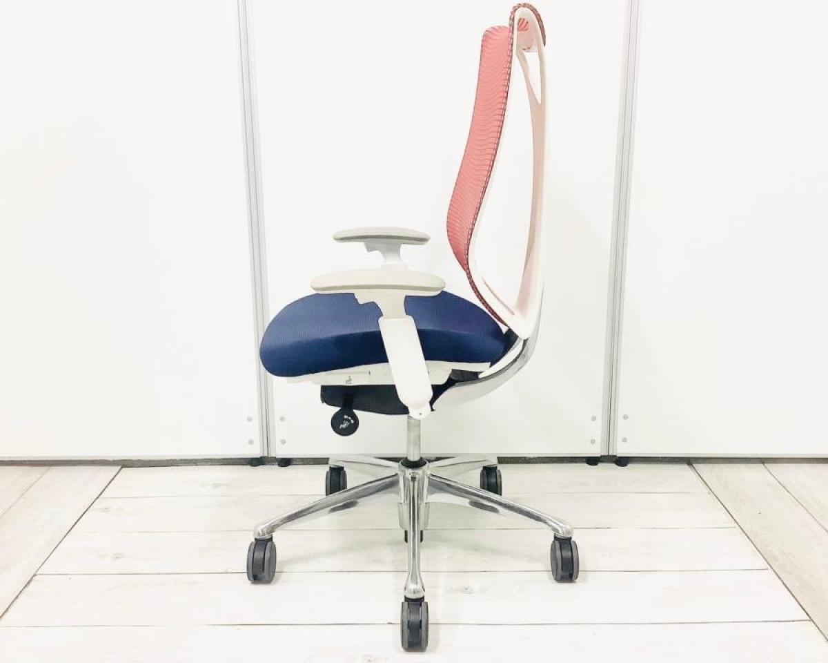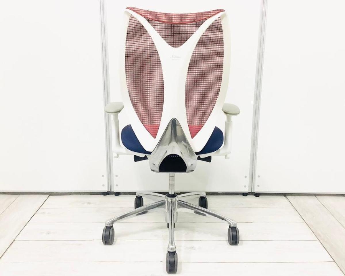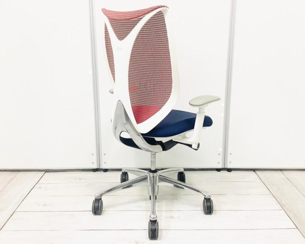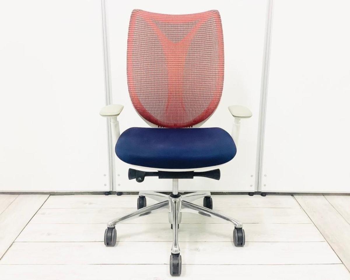 【在庫セール品・3脚限定】【T2】■Okamura/オカムラ ・Sabrina/サブリナ 肘付ハイバック ■座面:ダークブルー 背面:レッド ■デザインアーム(可動肘) ■ホワイトフレーム