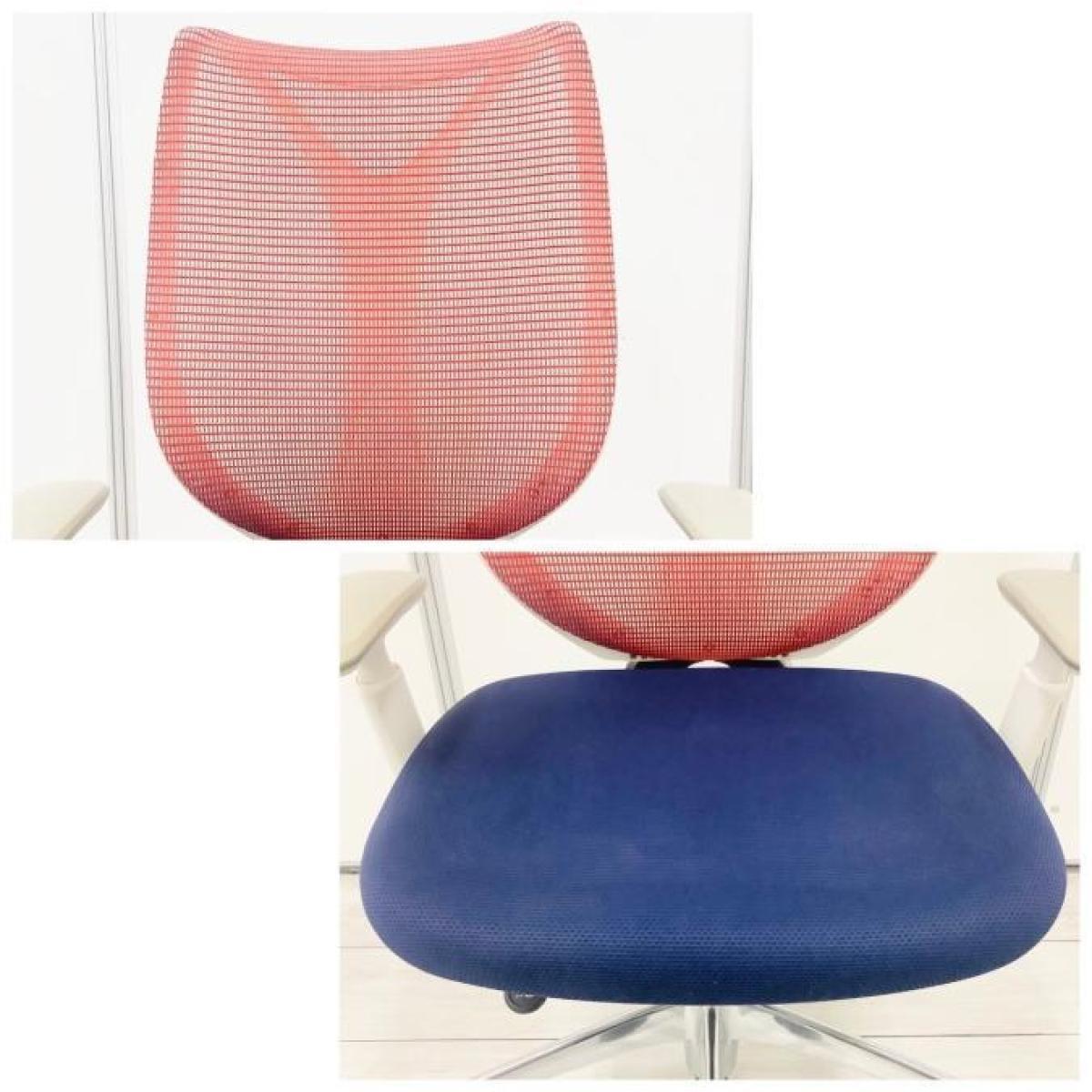 【在庫セール品・2脚限定】【T3】■Okamura/オカムラ ・Sabrina/サブリナ 肘付ハイバック ■座面:ダークブルー 背面:レッド ■デザインアーム(可動肘) ■ホワイトフレームサーキュラーバリューCO2削減量の算出について