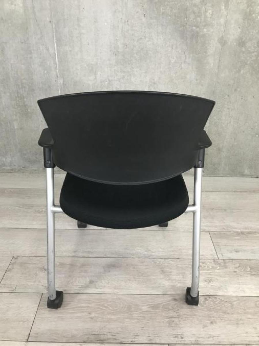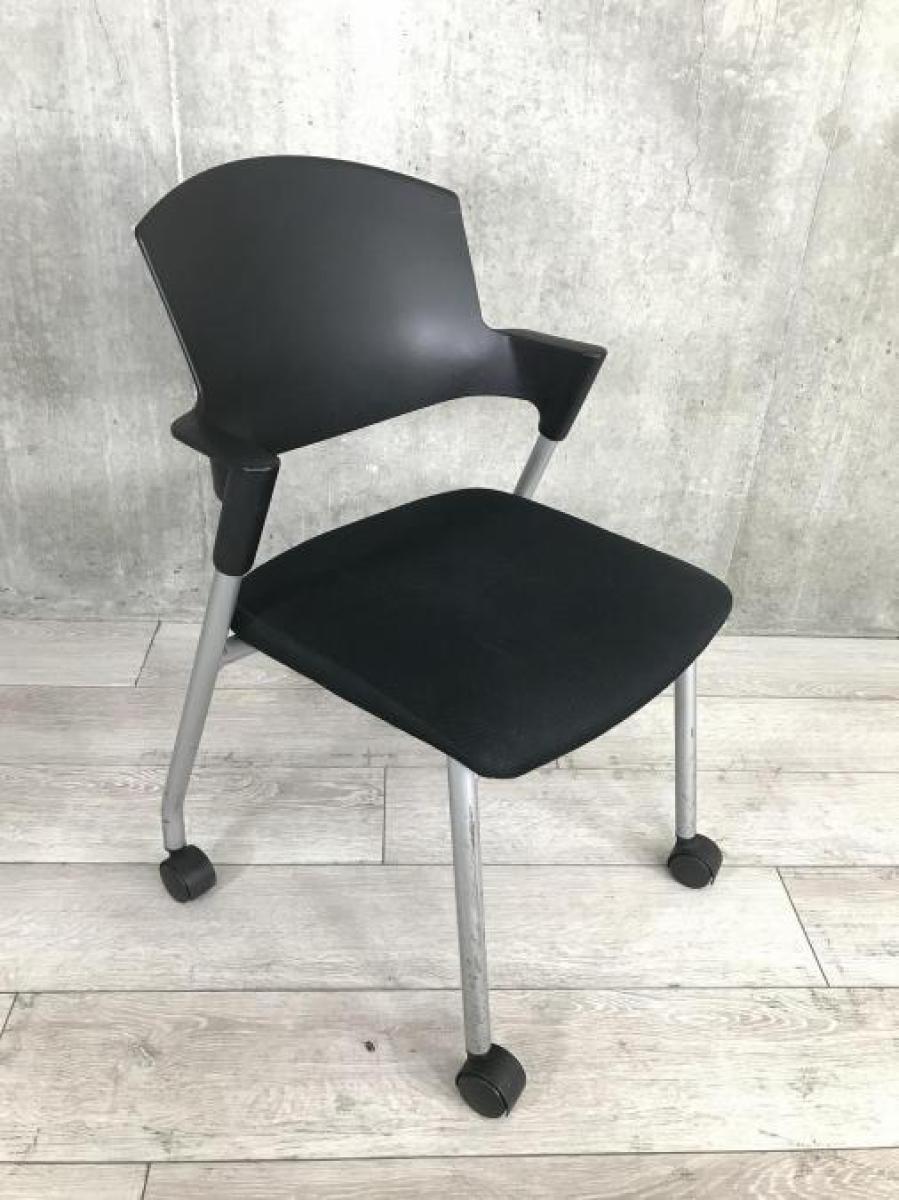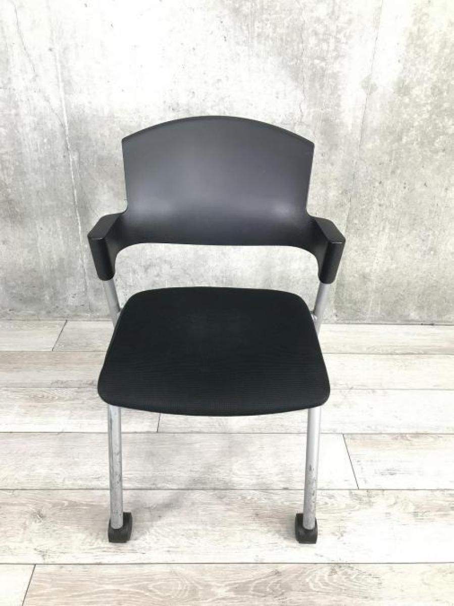 【シンプルスマートなスタッキングチェア!分厚いクッションで長時間でも快適な座り心地!】■コクヨ(KOKUYO)製 プロッティ(Protty)シリーズ スタッキングチェア ■ブラック ■固定肘 ■背面樹脂 ■キャスター付