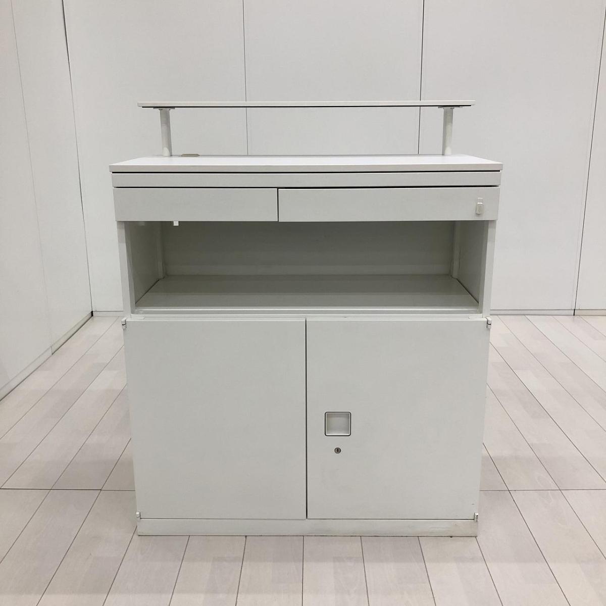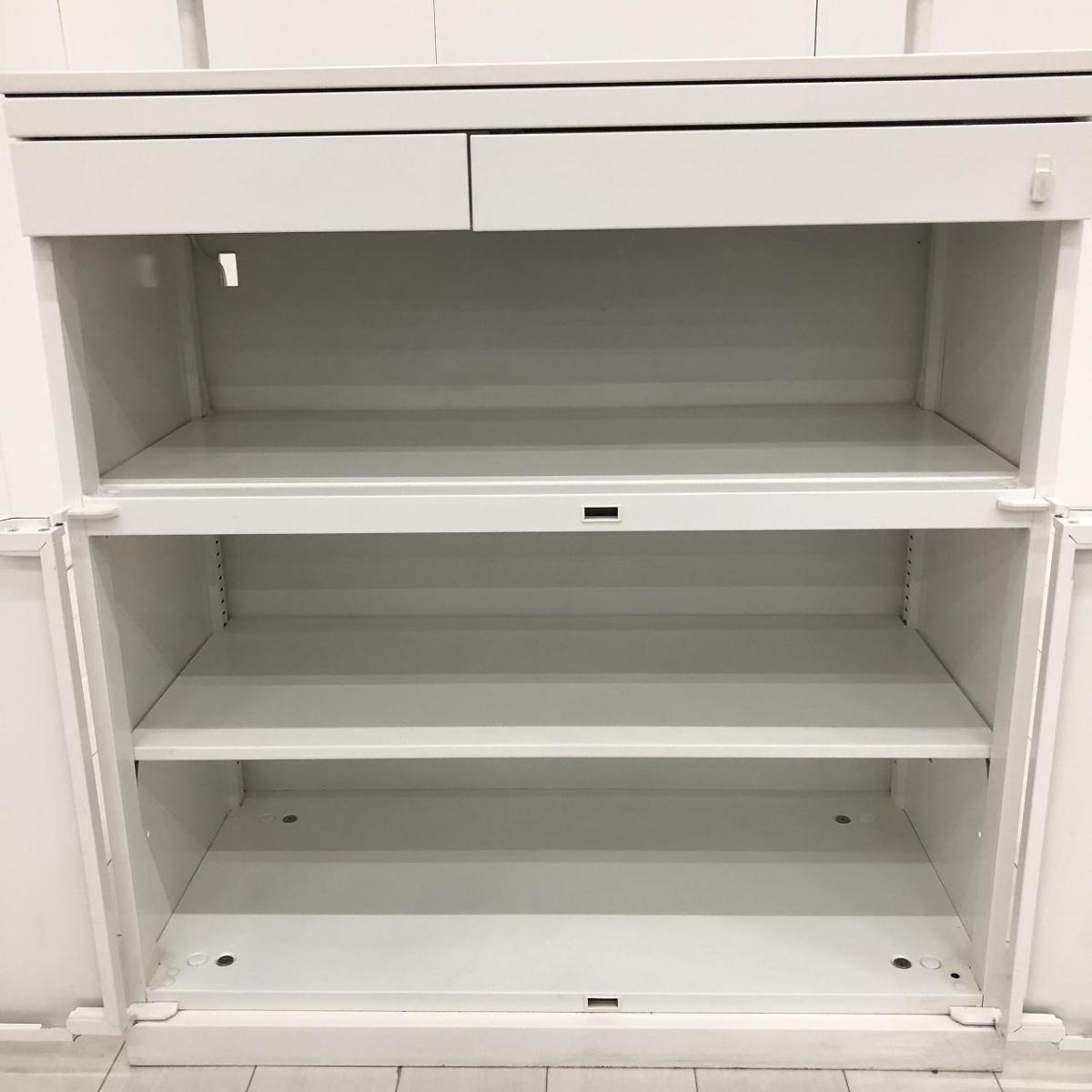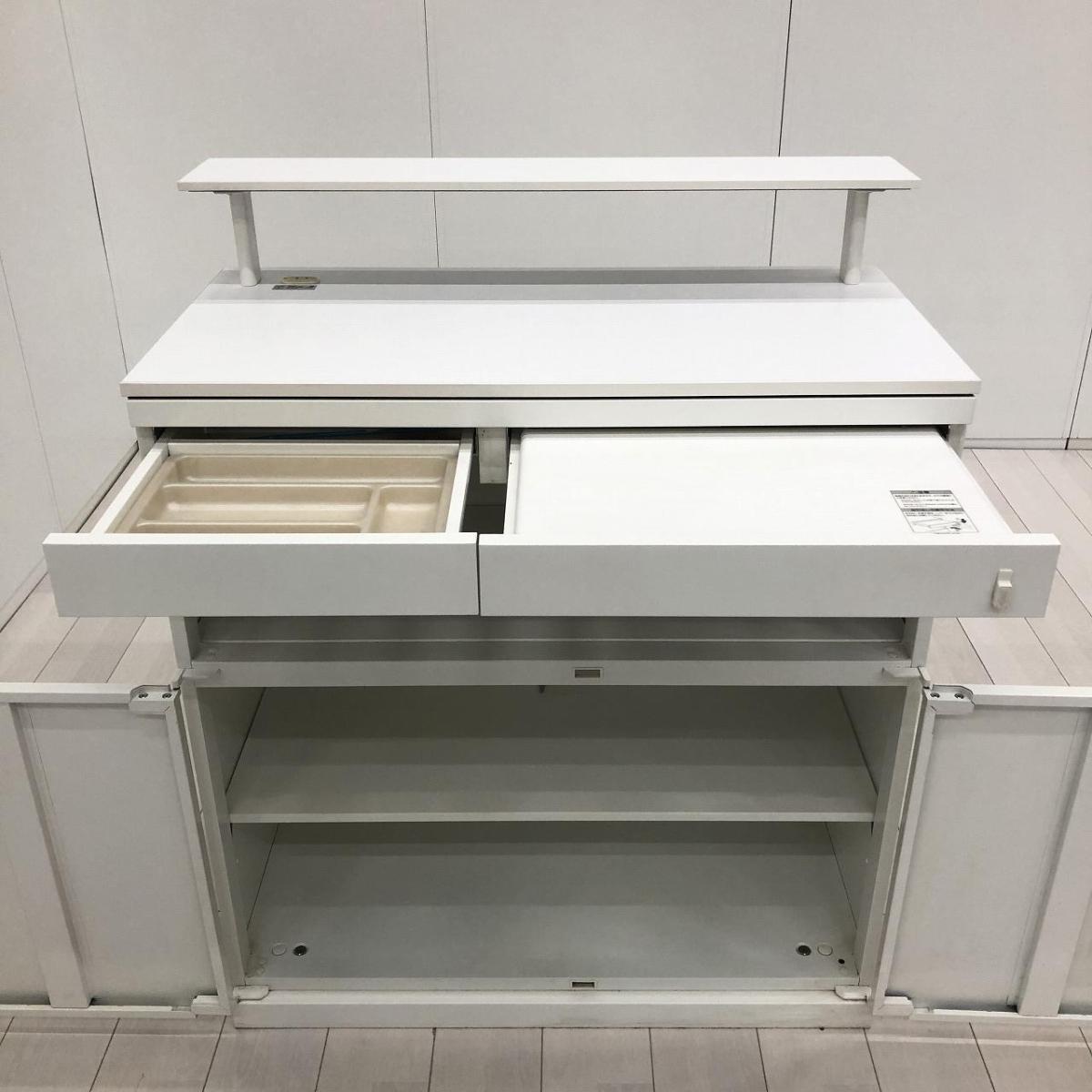【コンセントユニット付きのキャビネット!リフレッシュスペースや給湯室にオススメ】■オカムラ(okamura)製 レクトラインシリーズ キッチンキャビネット ローキャビネット ■コンセントユニット付 ■シリンダー錠 ■ホワイト【弊社使用欄:A01062111】- 錦糸町サテライト