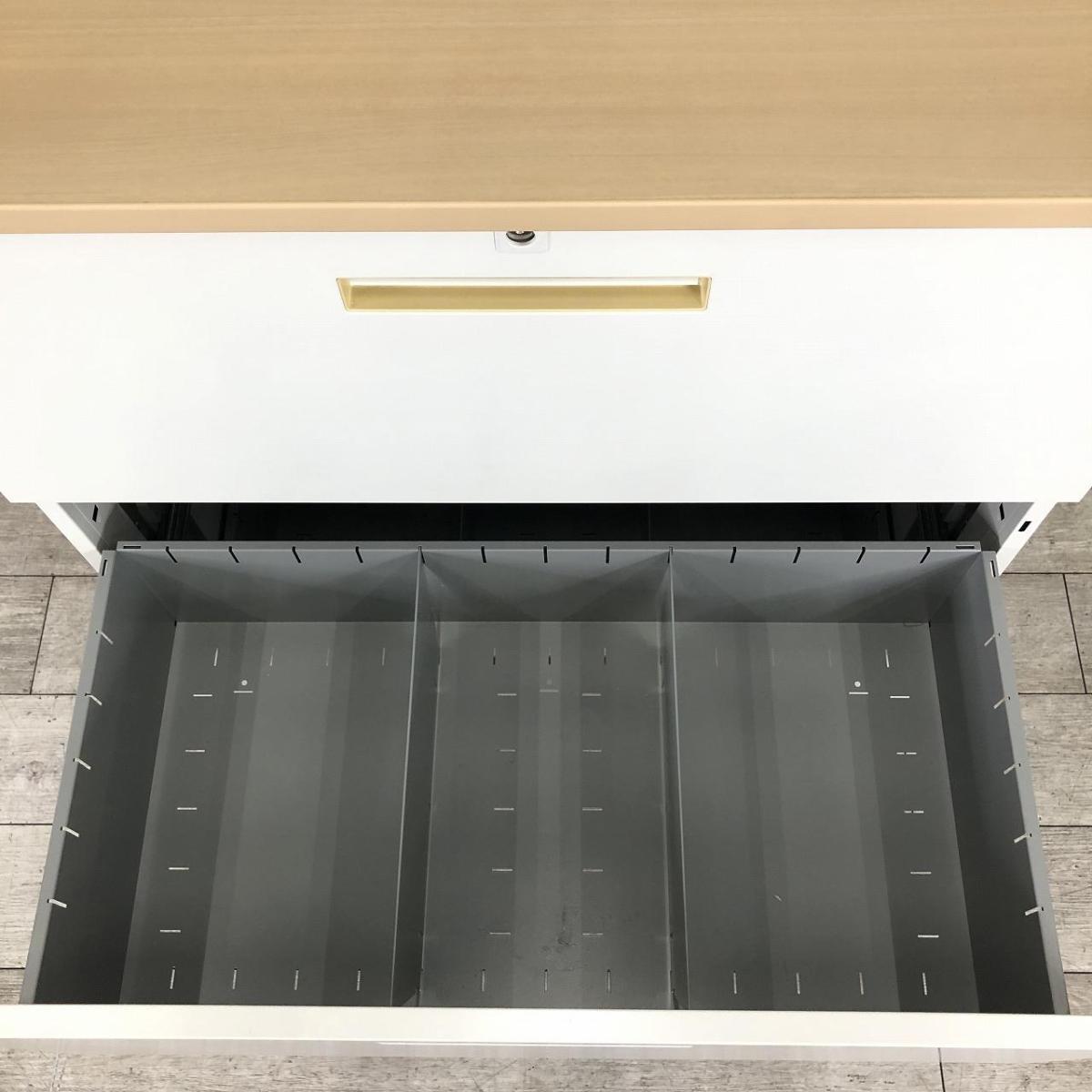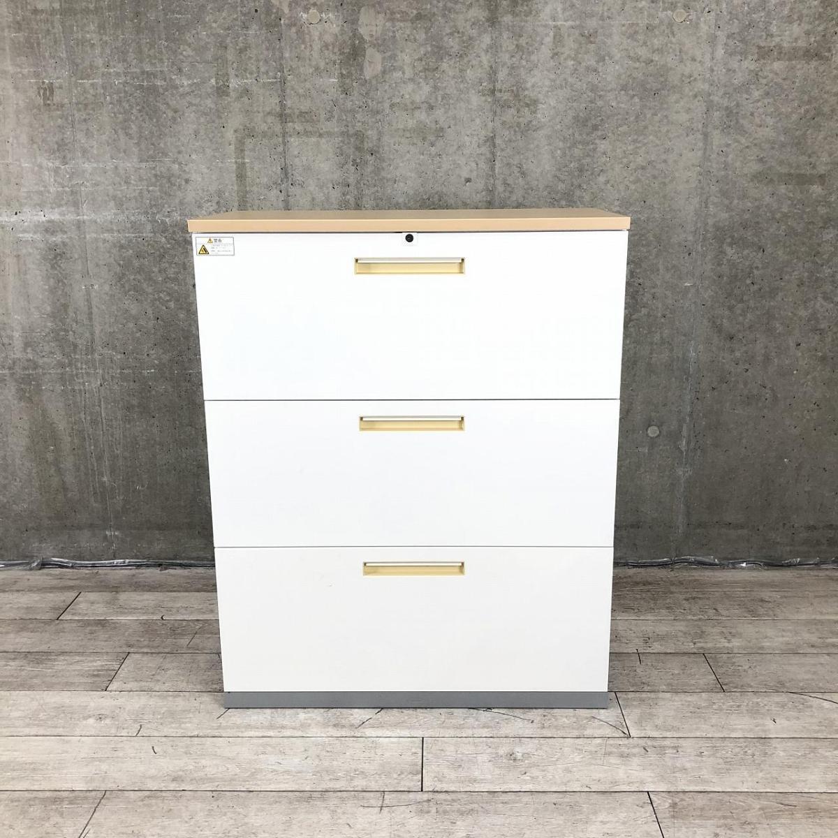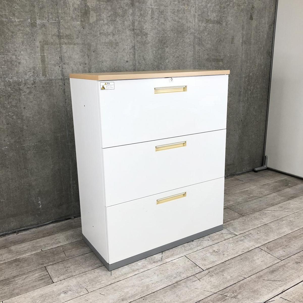 【取っ手部分日焼けの為特価!】【定価約14万円】【オフィスの必需品!!大容量のローキャビネット!】■イナバ(Inaba) 3段ラテラル ローキャビネット W900×D450(天板付き:D460)㎜ ■シリンダー錠 ■ホワイト ■ナチュラル木目調 天板付き ※取手日焼け有【2507】弊社使用欄【A01026261】