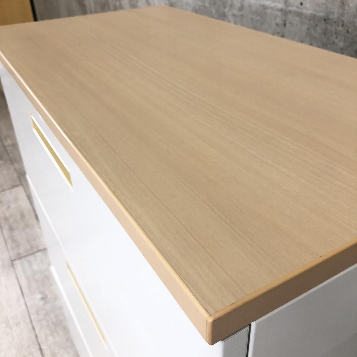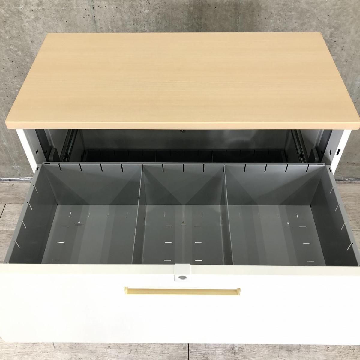 【定価約14万円】【オフィスの必需品!!大容量のローキャビネット!】■イナバ(Inaba) 3段ラテラル ローキャビネット W900×D450(天板付き:D460)㎜ ■シリンダー錠 ■ホワイト ■ナチュラル木目調 天板付き ※取手日焼け有- 茨城南店
