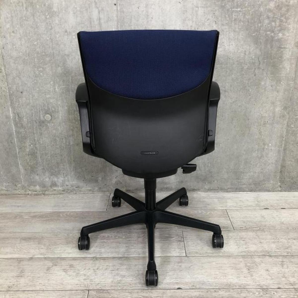 【長時間のデスクワークもランバーが快適にサポート!オフィスの定番チェア!起業や入替に!】■オカムラ(okamura)製 エスクードチェア (ESCUDO) ローバック 肘付き ■サークル肘 ランバー付 ■ダークブルー×ブラックシェル- 茨城南店