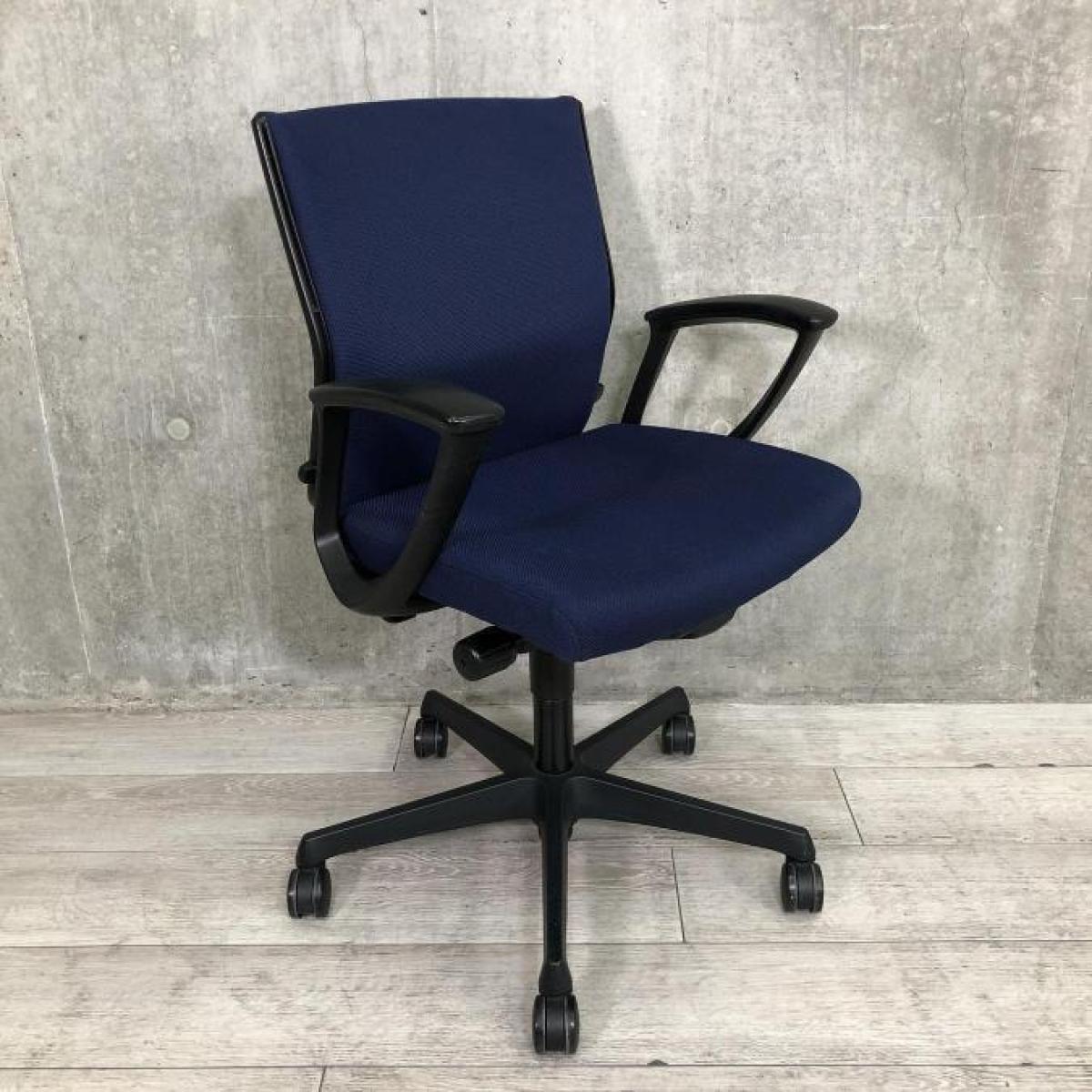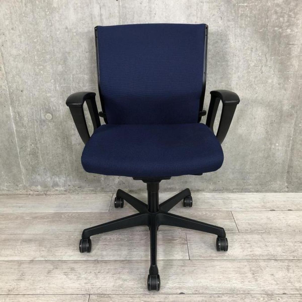 【商品入替セール!】■okamura(オカムラ)製 エスクードチェア ローバック ■固定肘付き ■色:ダークブルー 【2512】弊社使用欄【A01052383】