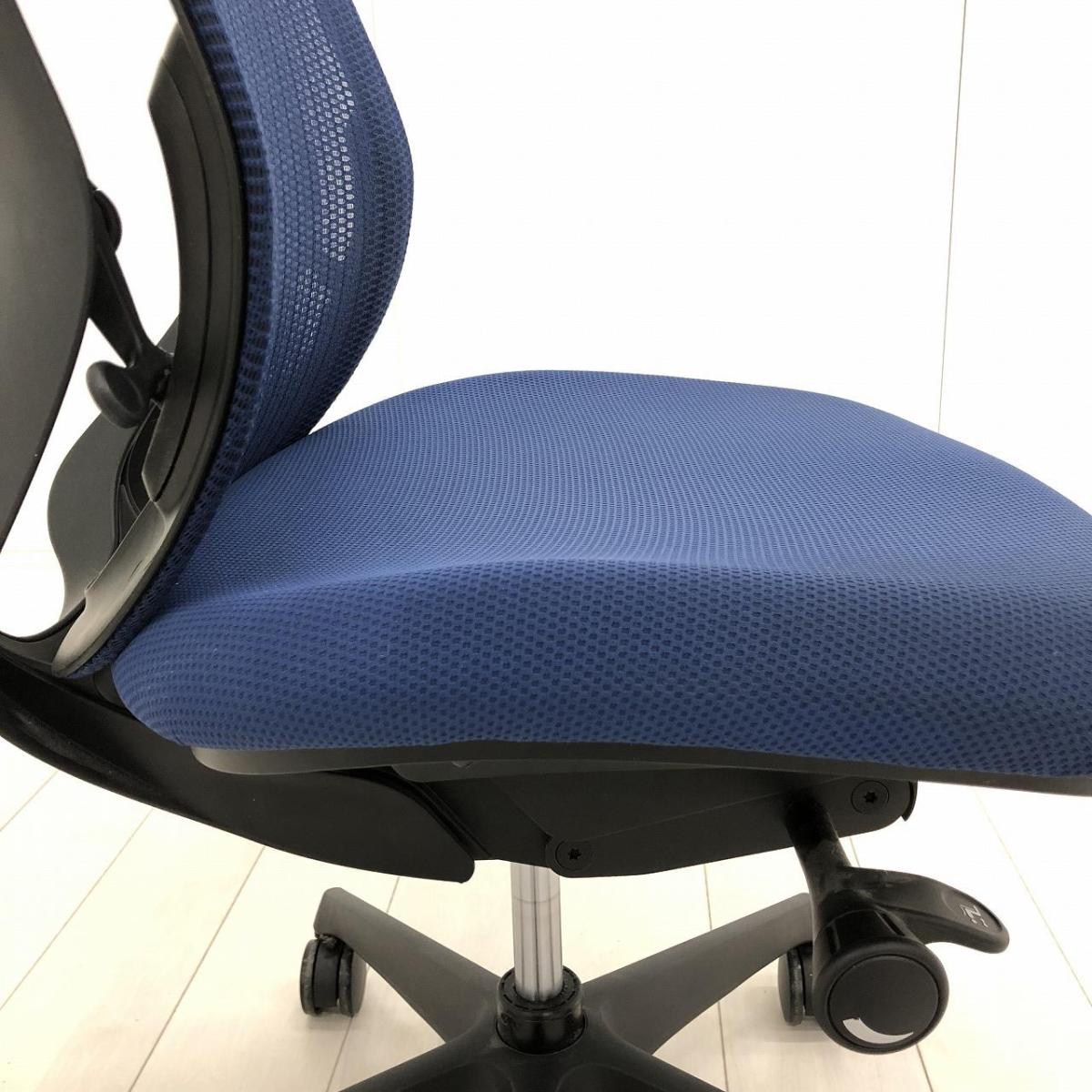 【在庫入替品】【前傾チルト機能付き!オカムラ製品で最も人気を集める高機能メッシュチェア!】■オカムラ(okamura)製 シルフィー(Sylphy)チェア 肘無ハイバック 背面メッシュ ■ブルー×ブラックフレーム【T4】
