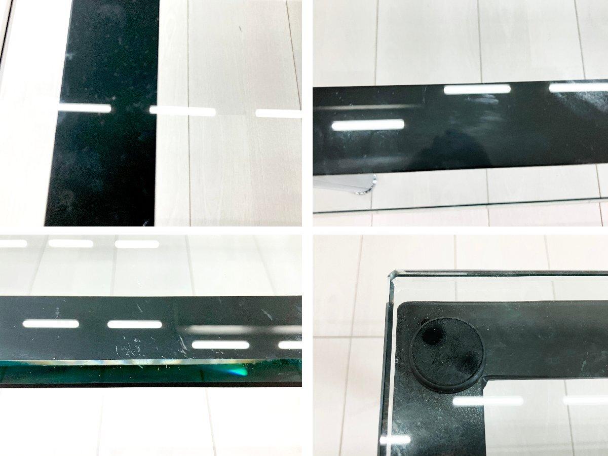 - 目立つ箇所あり傷・凹みが多数、深い傷・凹みが一部ある。(例、天板、幕板、棚板、サイド部分、脚部等にある。)