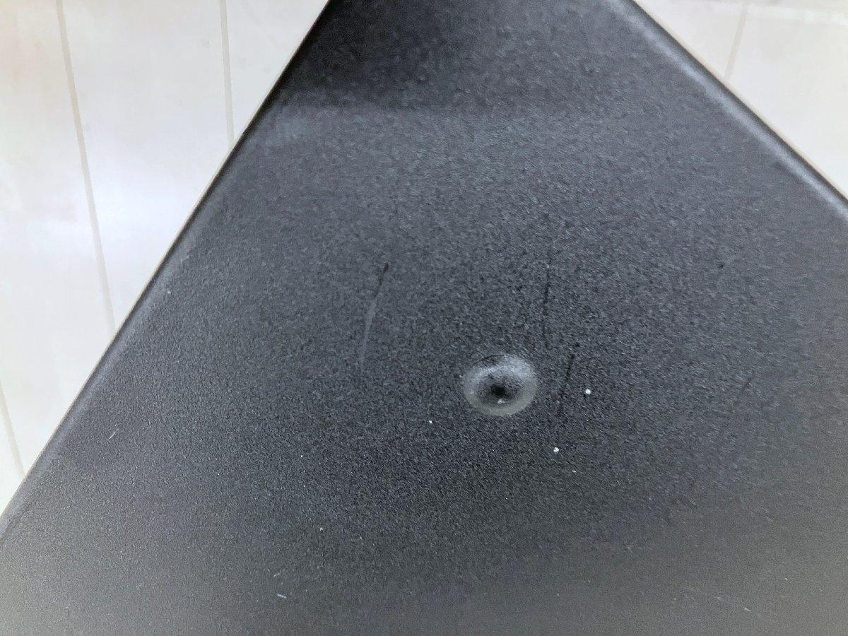 - 目立つ箇所あり傷・凹みが多数、深い傷・凹みが一部ある。(例、天板、正面、背後、サイド部分にある。)