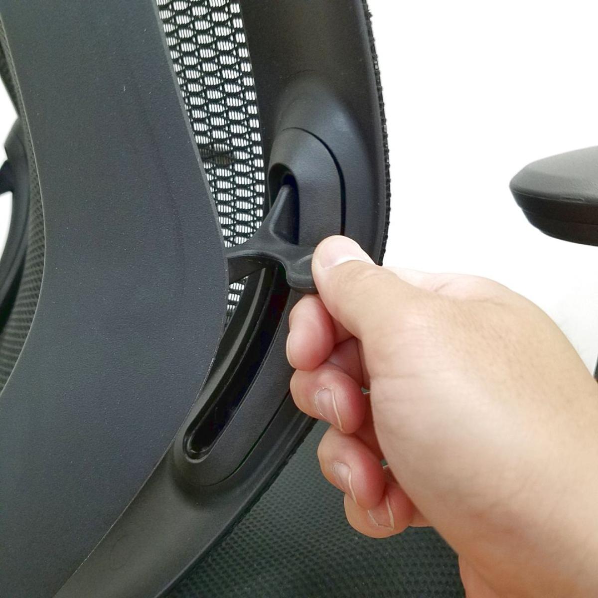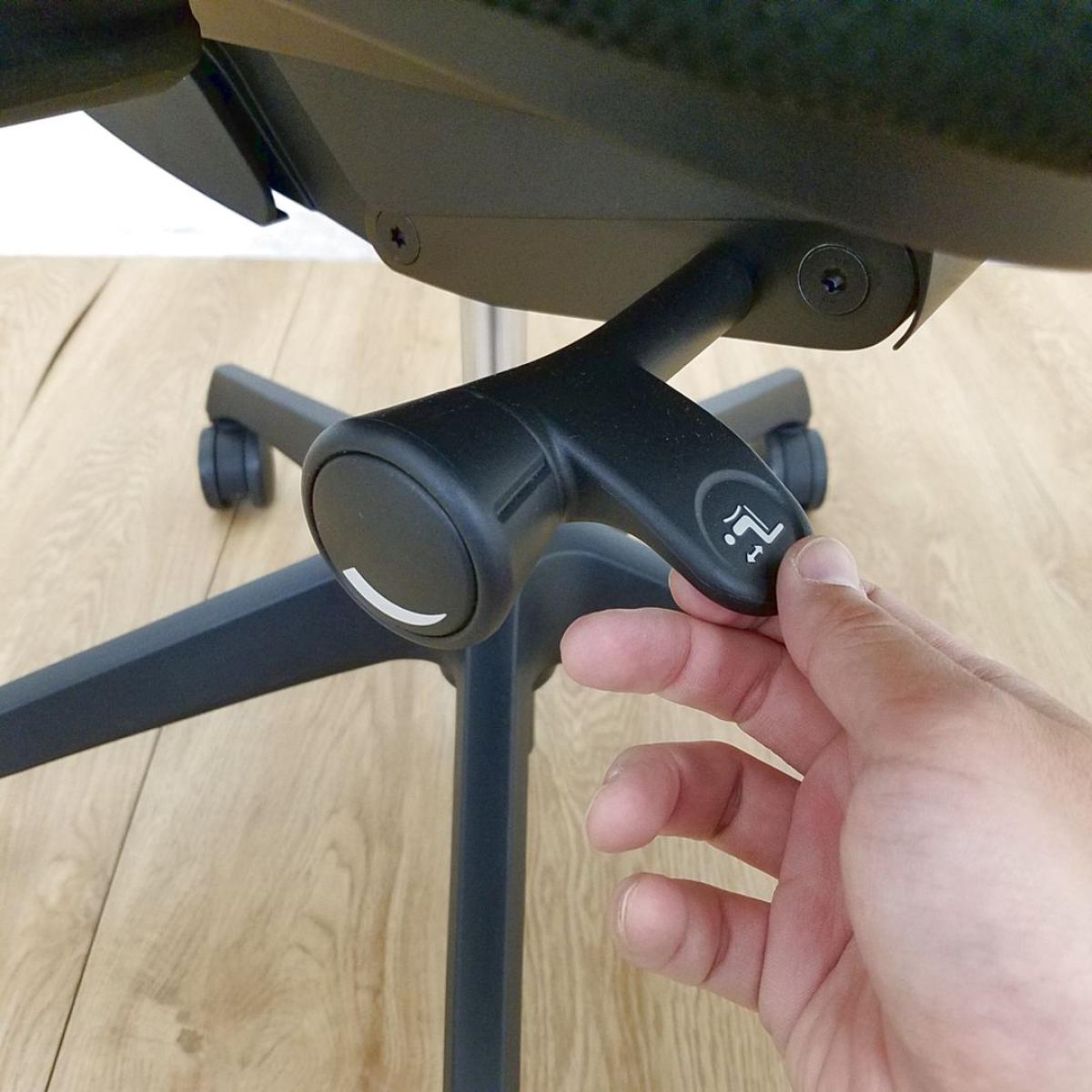 - 座面右下のダイヤル操作で、リクライニングの強弱調整が行えます。これまでのダイヤル式よりも、少ない回転数で、最弱?最強の調整が可能です。
