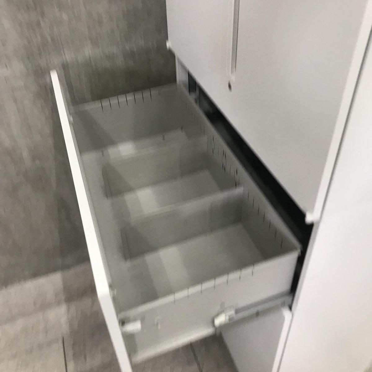 - 扉や引出しに、ラッチ機構を装備。地震時に勝手に扉や引出しが開き、収納物がユニットから飛び出すのを抑制します。