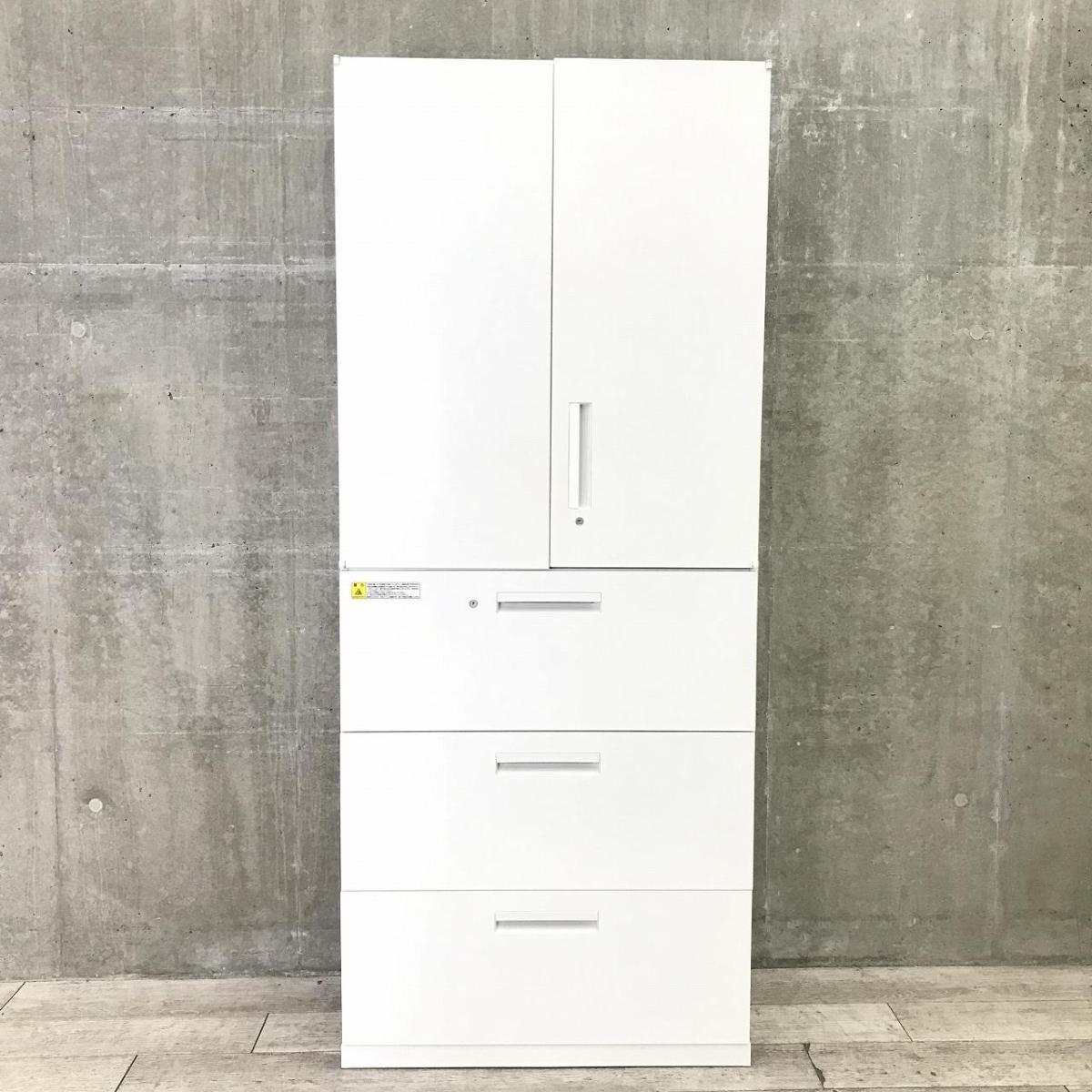 【在庫入れ替え】【人気の上下書庫セット!オフィス書類を大量に収納!】■ウチダ(UCHIDA)製 ハイパーストレージ(HS)シリーズ 両開き+3段ラテラル 書庫セット H2150㎜ ハイキャビネット ■ホワイト ■シリンダー錠【T4】