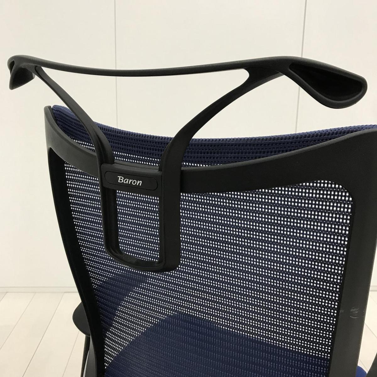発売当時、既に人気を博していたオカムラの高級チェア、コンテッサから手元で座高調整ができるスマートオペレーション機能を取り除くなどしてリーズナブルにしたのがバロンです。その際に少しだけコンパクト化されました。そのことが、日本人の体格、日本のオフィス、家庭環境に適し、国内で多くのシェアを獲得する要因の一つになったのではないかと思います。