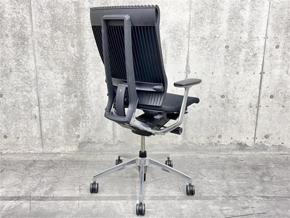 一番の特長は、着座時にチェアがピタっと体にフィットしてくれることです。 人がチェアの座り心地を調節するのではなく、チェアが人に合わせて動くのです!着座時に座面が沈み込みながら後方へスライドし、それと同時に背もたれの腰部分が前にせり出し、「ずっと座っていたくなる」と言われるほどの座り心地に調節してくれます。それを実現しているのが、A.L.S(アクティブ・ランバー・サポート)機構とP.S.S(パッシブ・スライド・シート)機構です。 さらに、背もたれにかかる体圧を徹底的に分析して作られた絶妙なカーブが、常に腰をサポートしつつ背骨のラインに沿ってくれます。