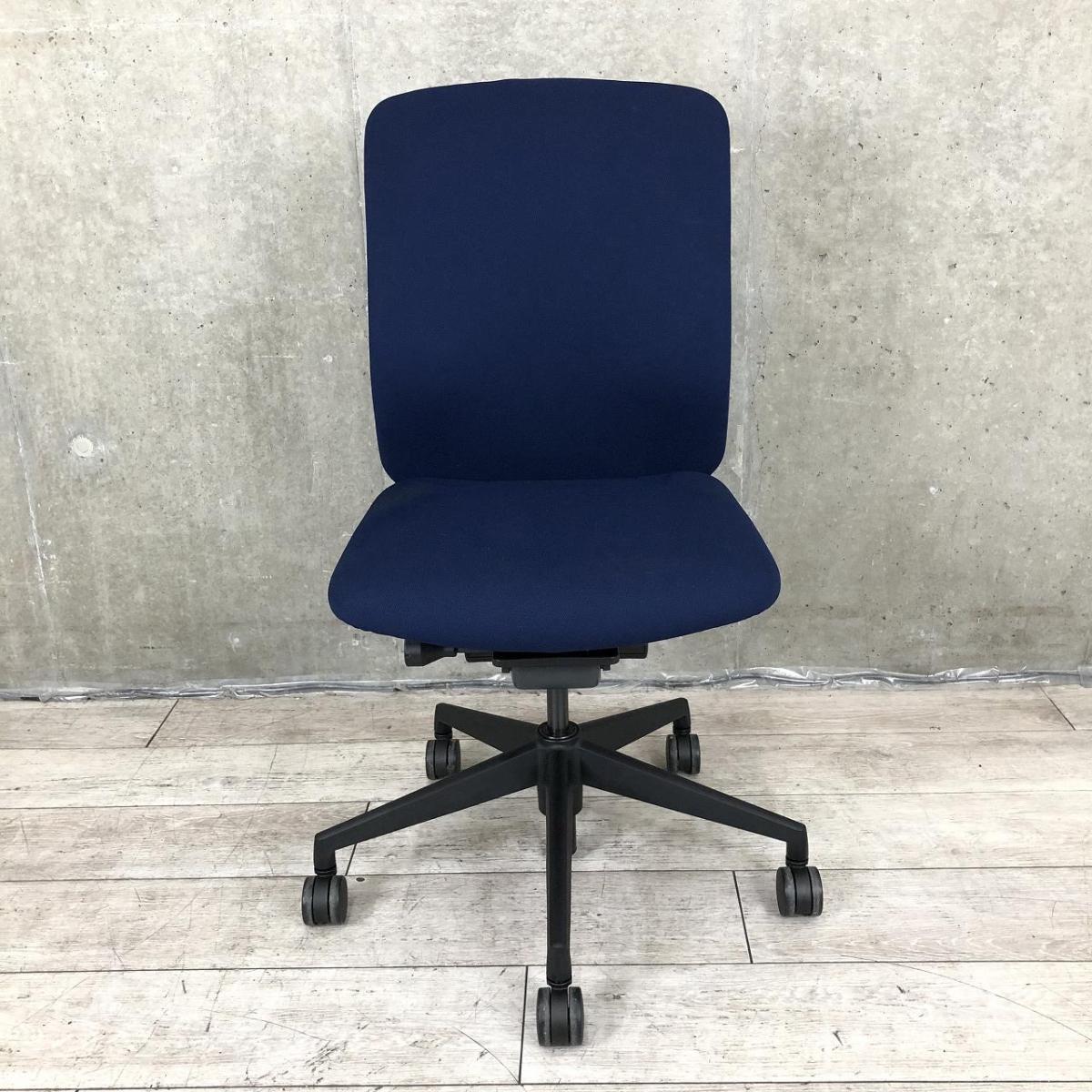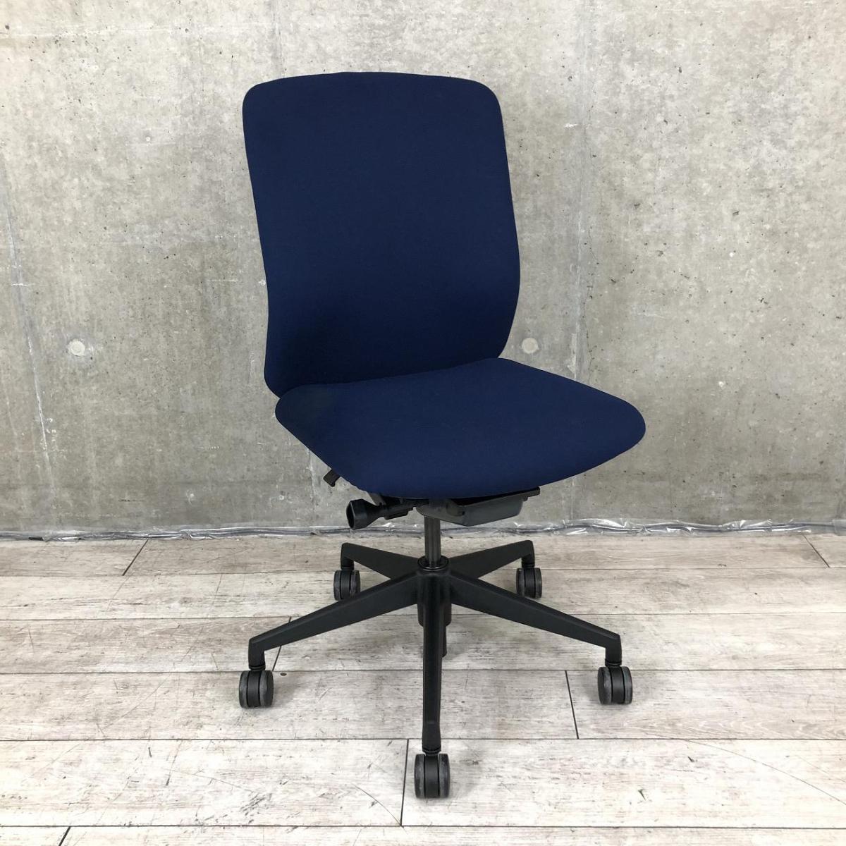 【リアルシンクロリクライニング搭載で快適な座り心地!】■ウチダ(UHIDA/内田洋行)製 クレネ(KRENE)チェア 肘無し ハイバック ■ダークブルー×ブラックシェル