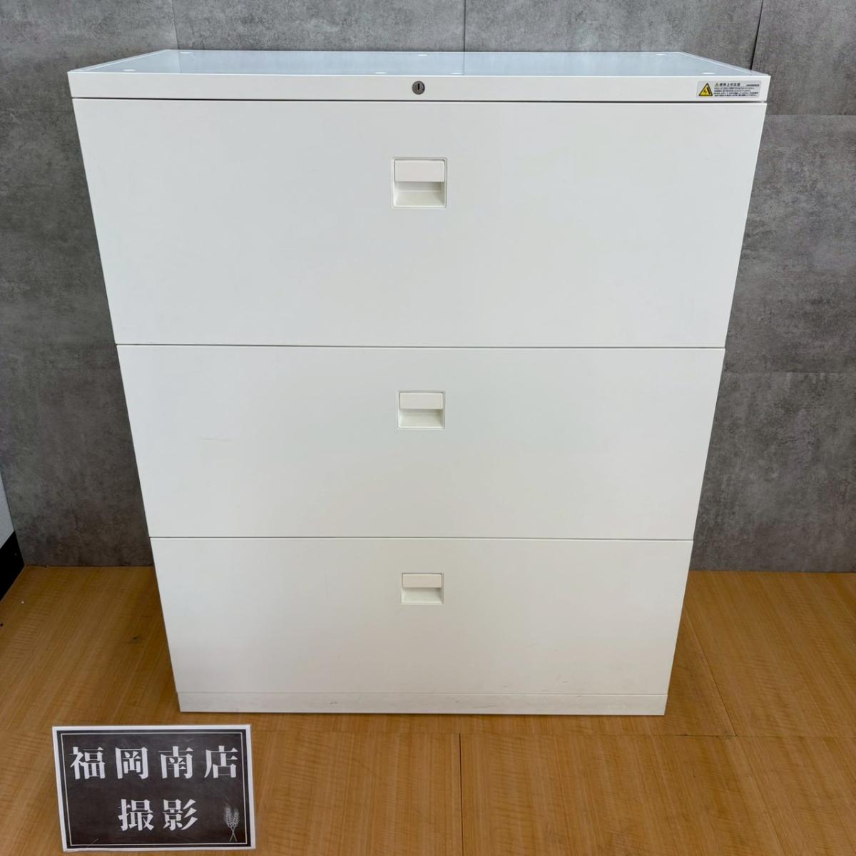 【大きく開いて収納物が見やすく、収納力も抜群!どの空間でも使いやすいホワイトカラー!】■オカムラ(okamura)製 3S書庫シリーズ 3段ラテラル ローキャビネット W900×D450㎜ ■シリンダー錠 ■ホワイト ※取手日焼け有【AD】