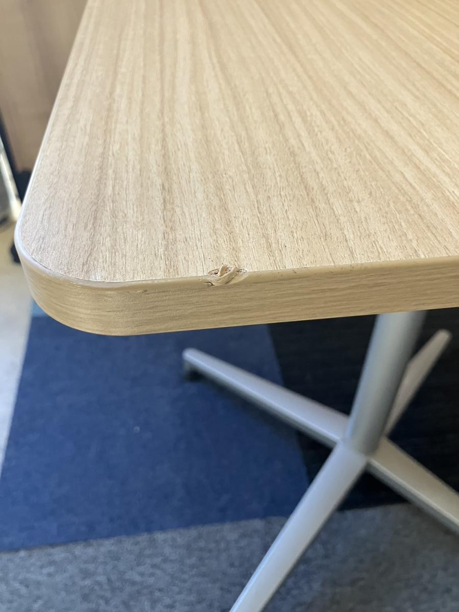 - 壊れている天板歪み、アジャスター無し、キャスター使用不可のようにそのテーブルの本来の効用を果たすための機能に不具合がある。