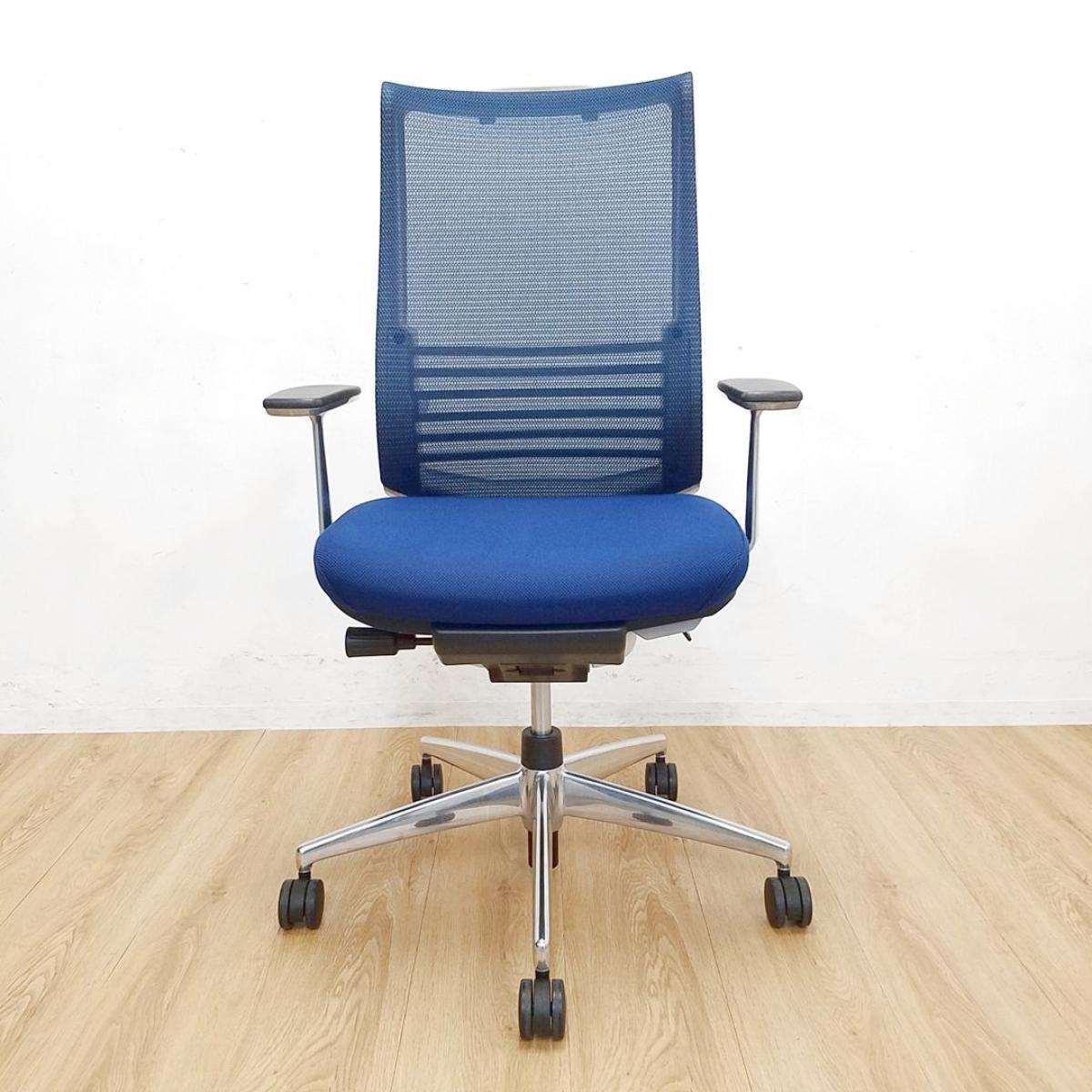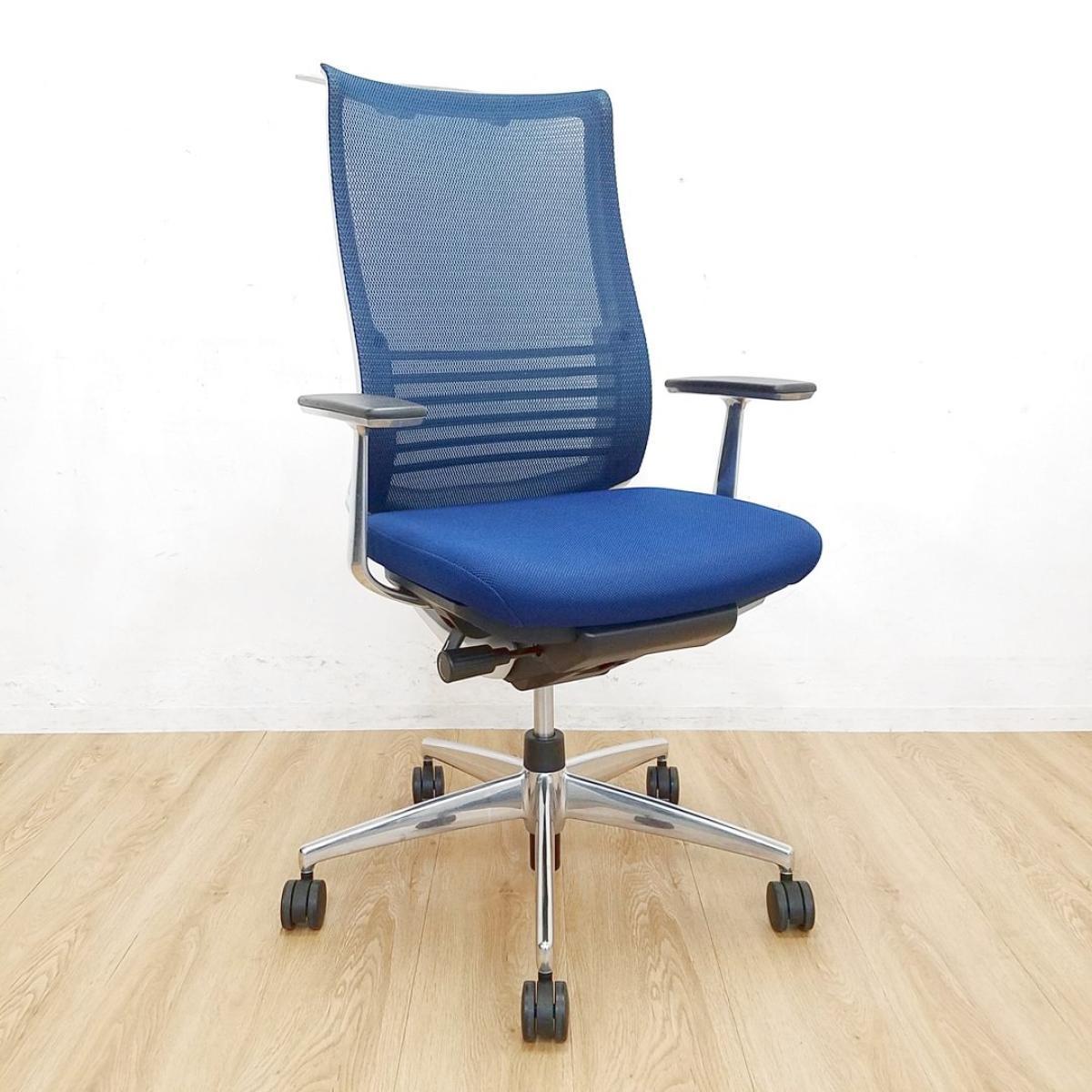 腰に優しいチェア入荷!中古 高級チェア オフィスチェア メッシュ ブルー おしゃれ テレワーク 前傾姿勢 前傾チルト ハイバック ランバーサポート