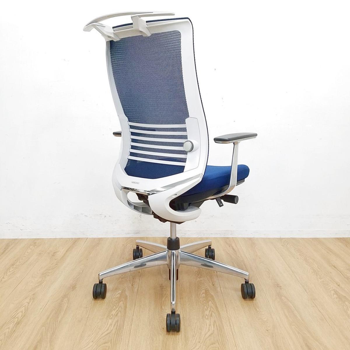 【前傾から後傾まで様々な姿勢をサポート!ワンランク上の座り心地!】■コクヨ(KOKUYO)製 ベゼル(Bezel)チェア 肘付き ハイバック 背面メッシュ ■可動肘 ■ランバーサポート付き ■プルシアンブルー×ホワイトシェル ※背面スレ有