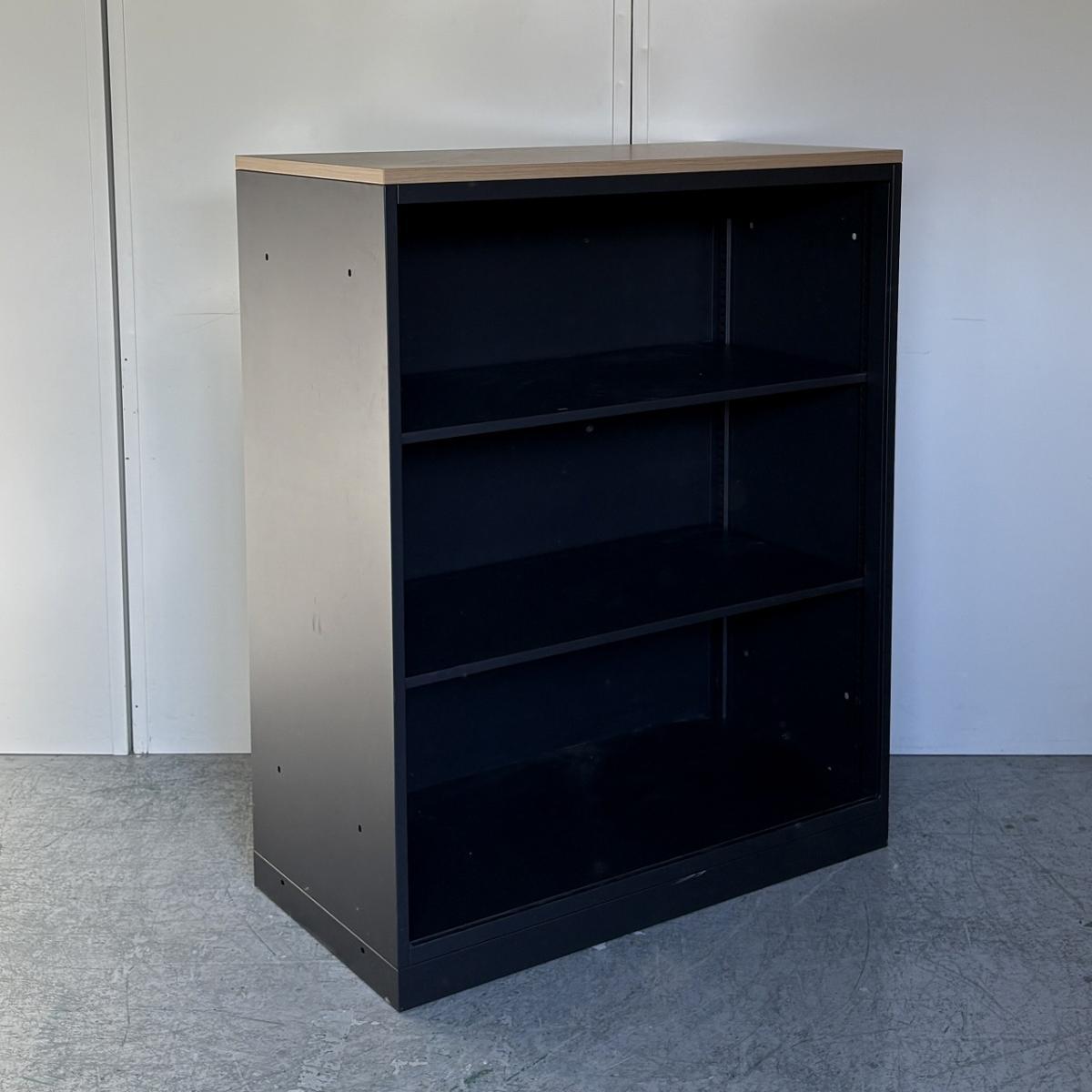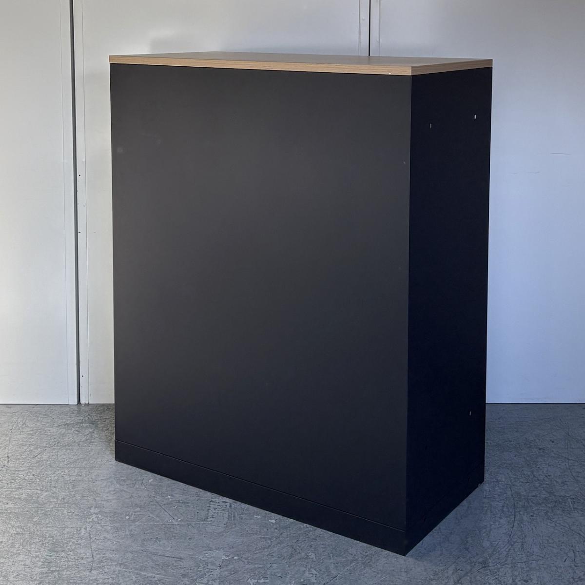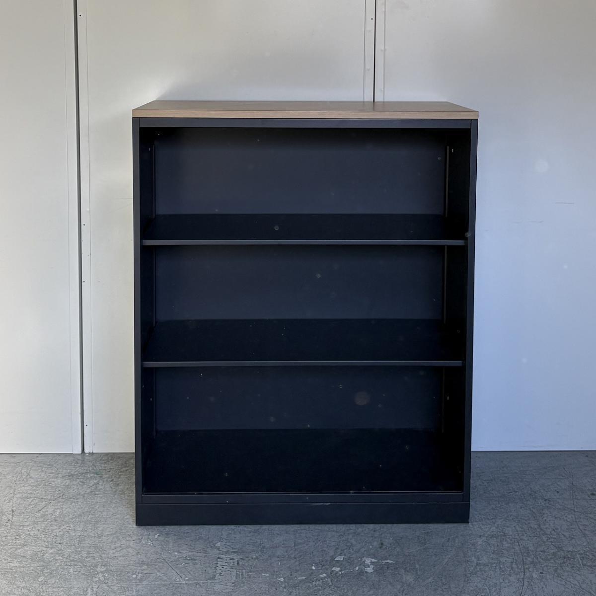 【在庫セール品・1台限定】【T3】■イトーキ(ITOKI)製 エスキャビネット(eS)シリーズ オープン書庫 ローキャビネット W900×D450㎜ ■本体:ブラック/天板:木目ナチュラル【見える化とコスパにフォーカスしたオープン書庫! レアなブラックカラーで入荷!】- 新大阪店
