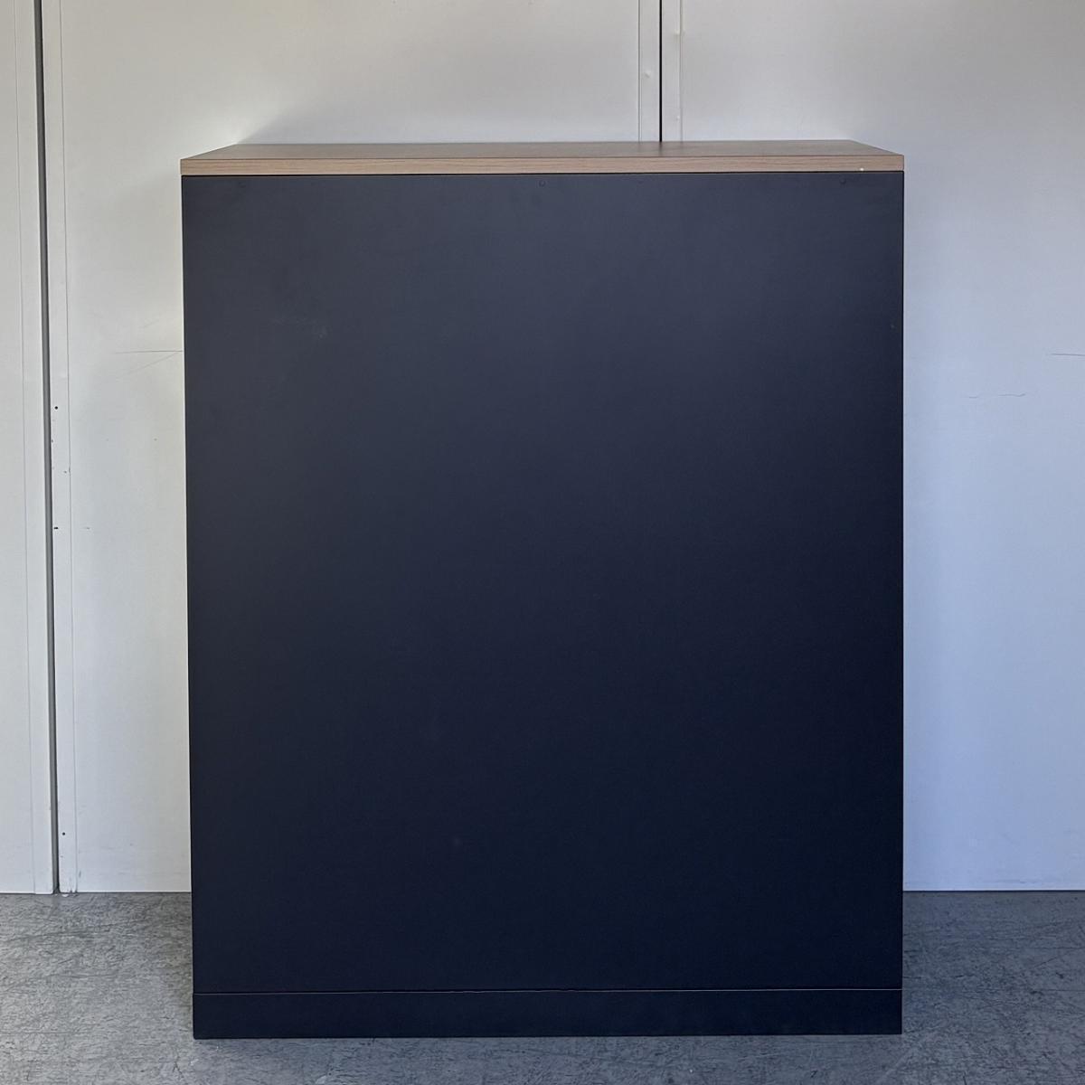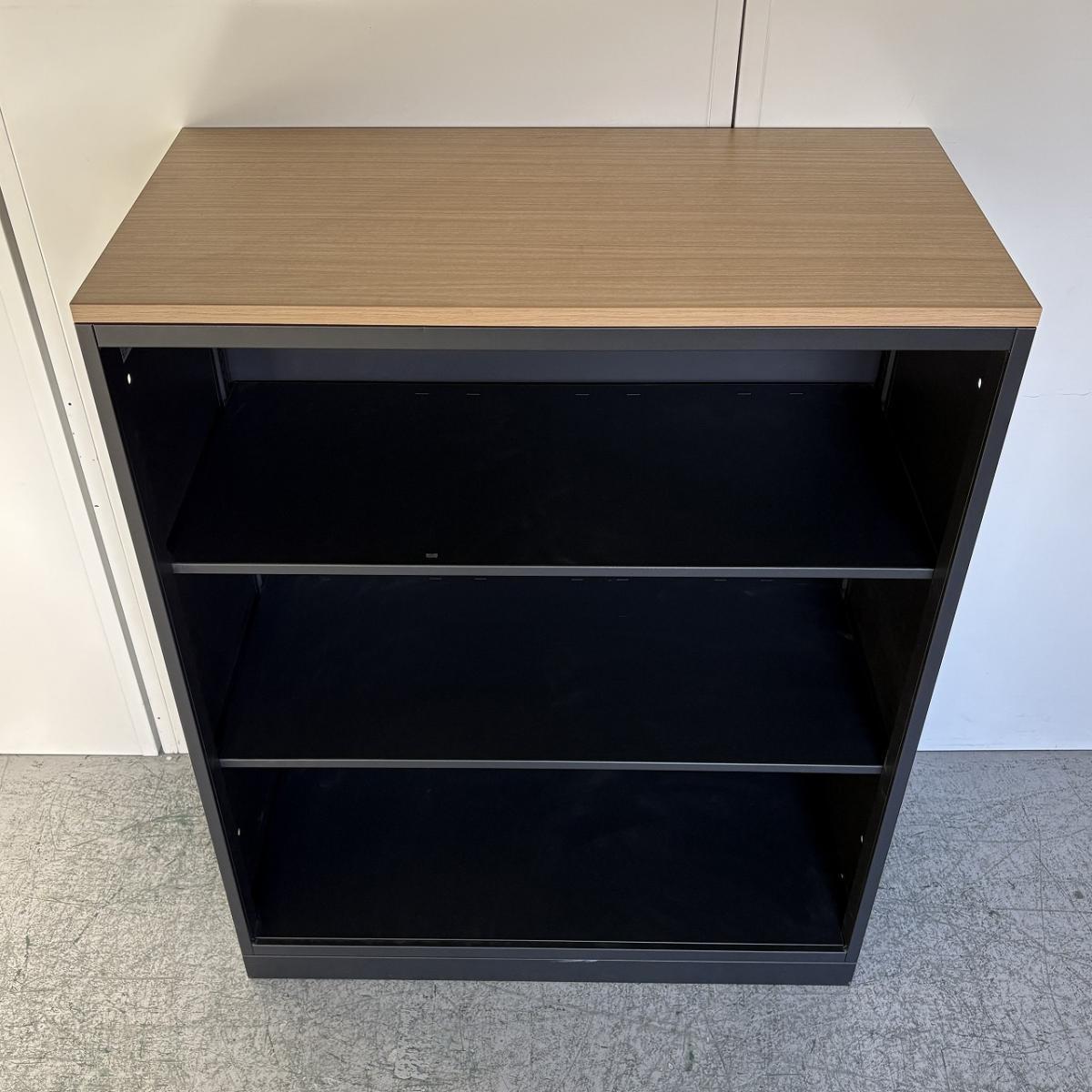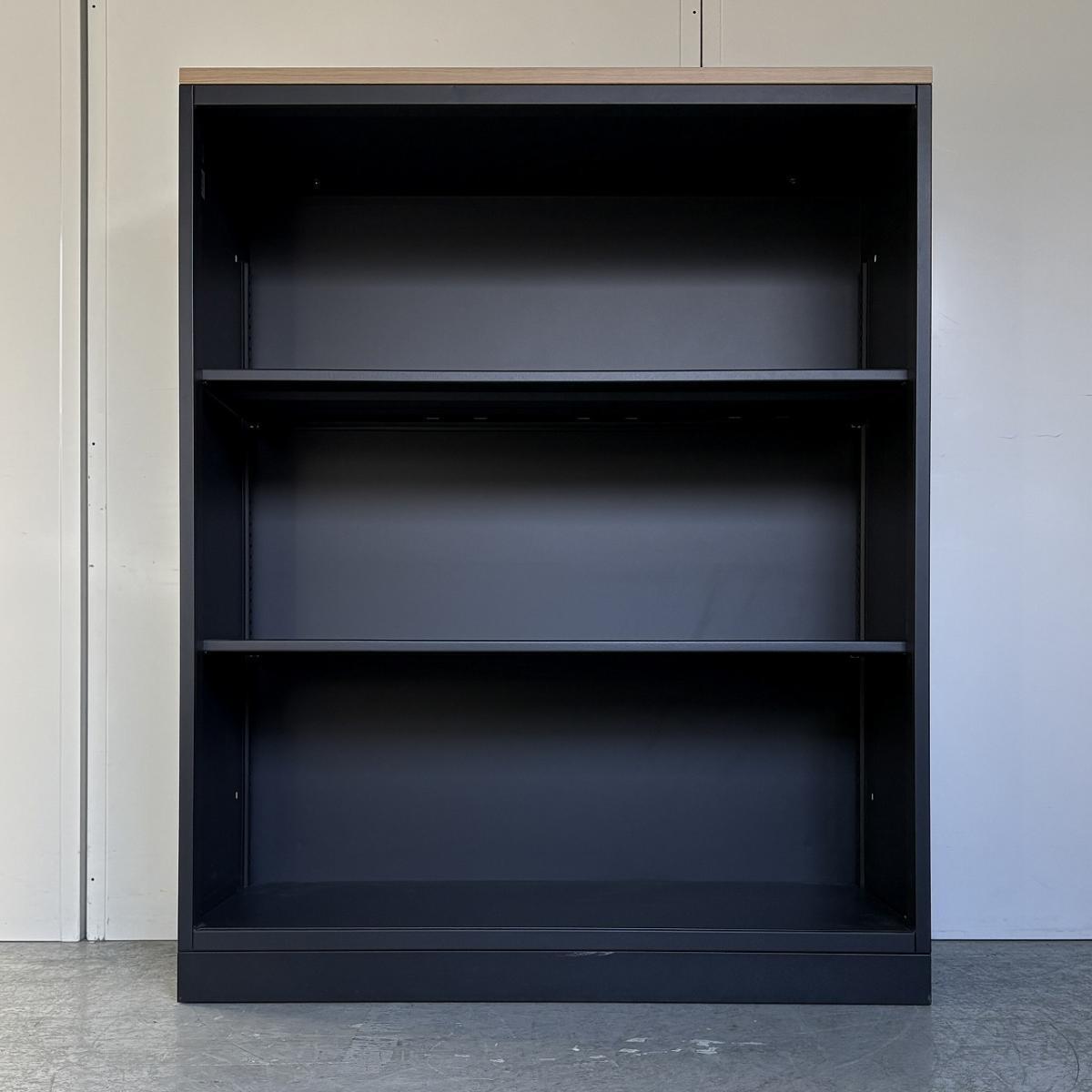 【在庫セール品・1台限定】【T3】■イトーキ(ITOKI)製 エスキャビネット(eS)シリーズ オープン書庫 ローキャビネット W900×D450㎜ ■本体:ブラック/天板:木目ナチュラル【見える化とコスパにフォーカスしたオープン書庫! レアなブラックカラーで入荷!】- 新大阪店