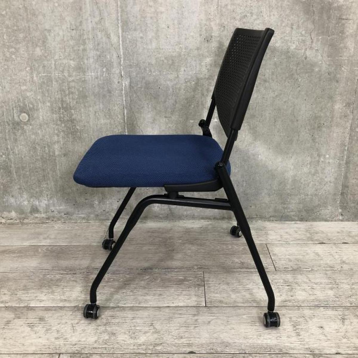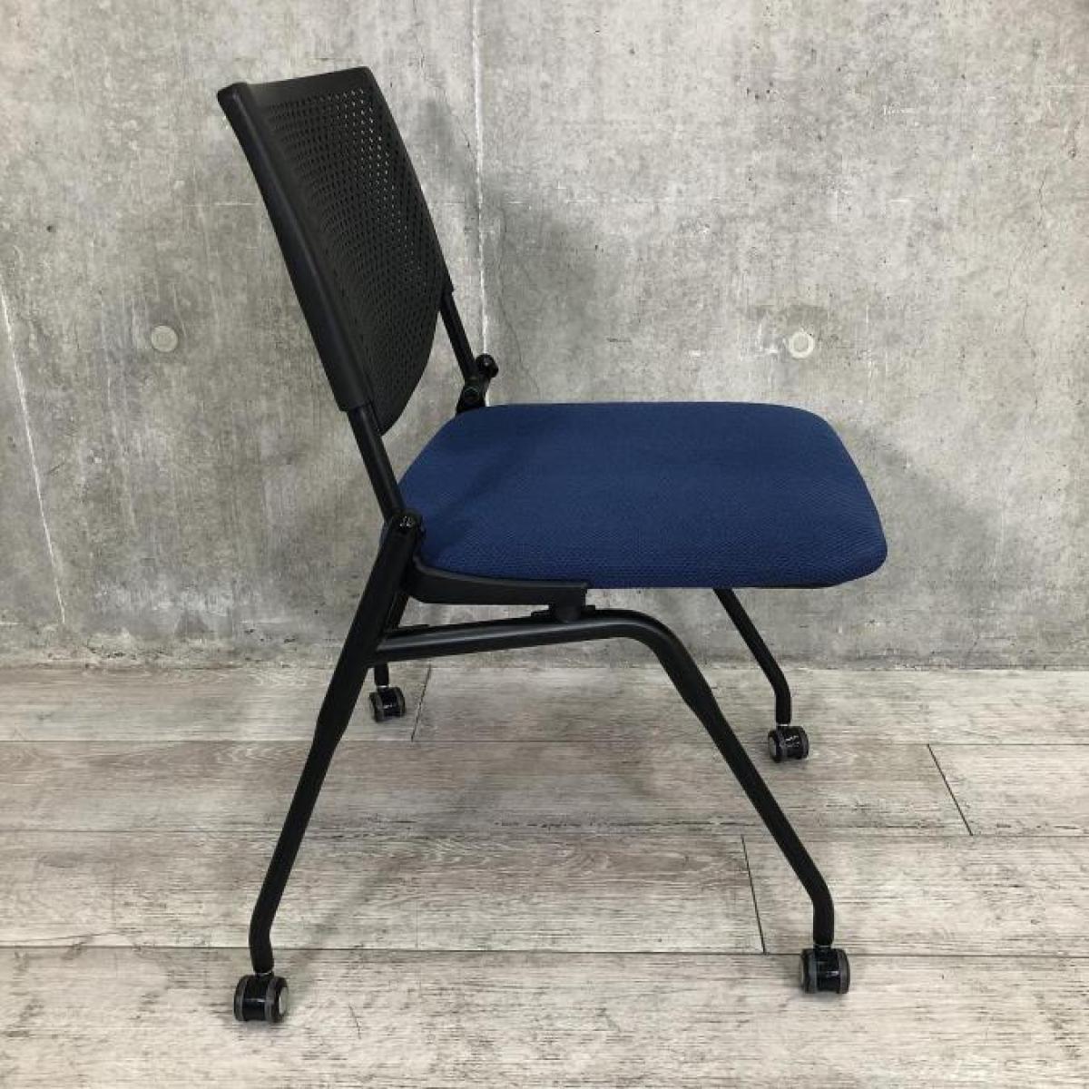 【キャスター付きのミーティングチェア入荷!】■okamura(オカムラ) プロスタック ミーティングチェア ネスティング ■キャスター付き ■ブルー座面×ブラックフレーム【使わない時は重ねて収納可能!】