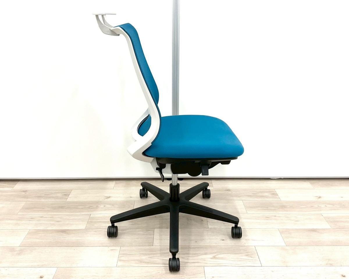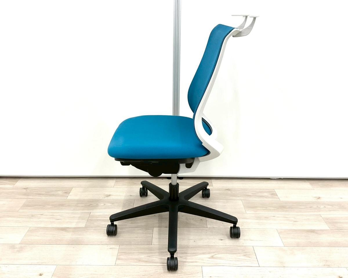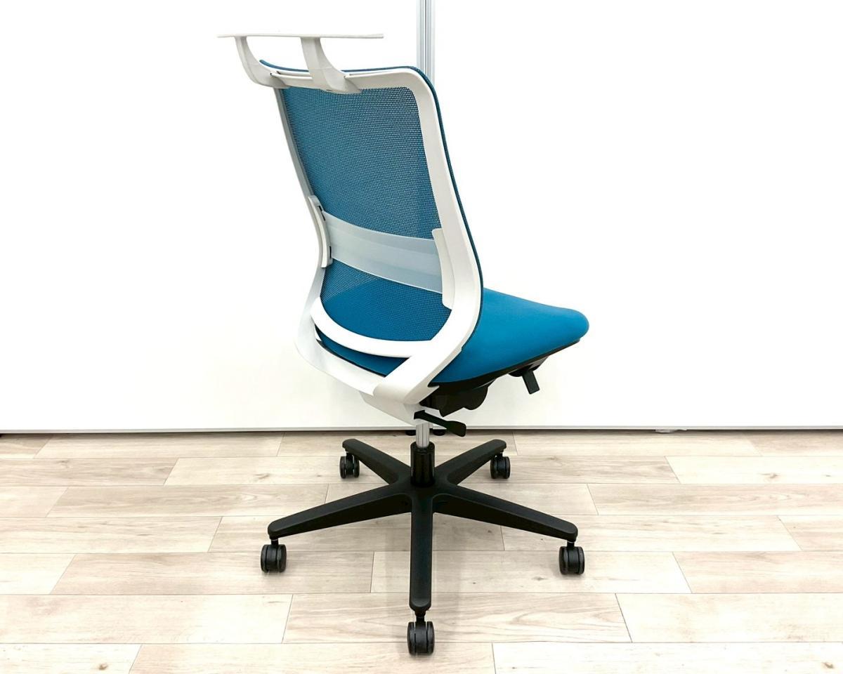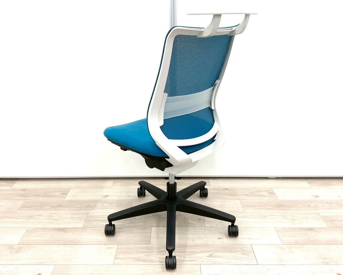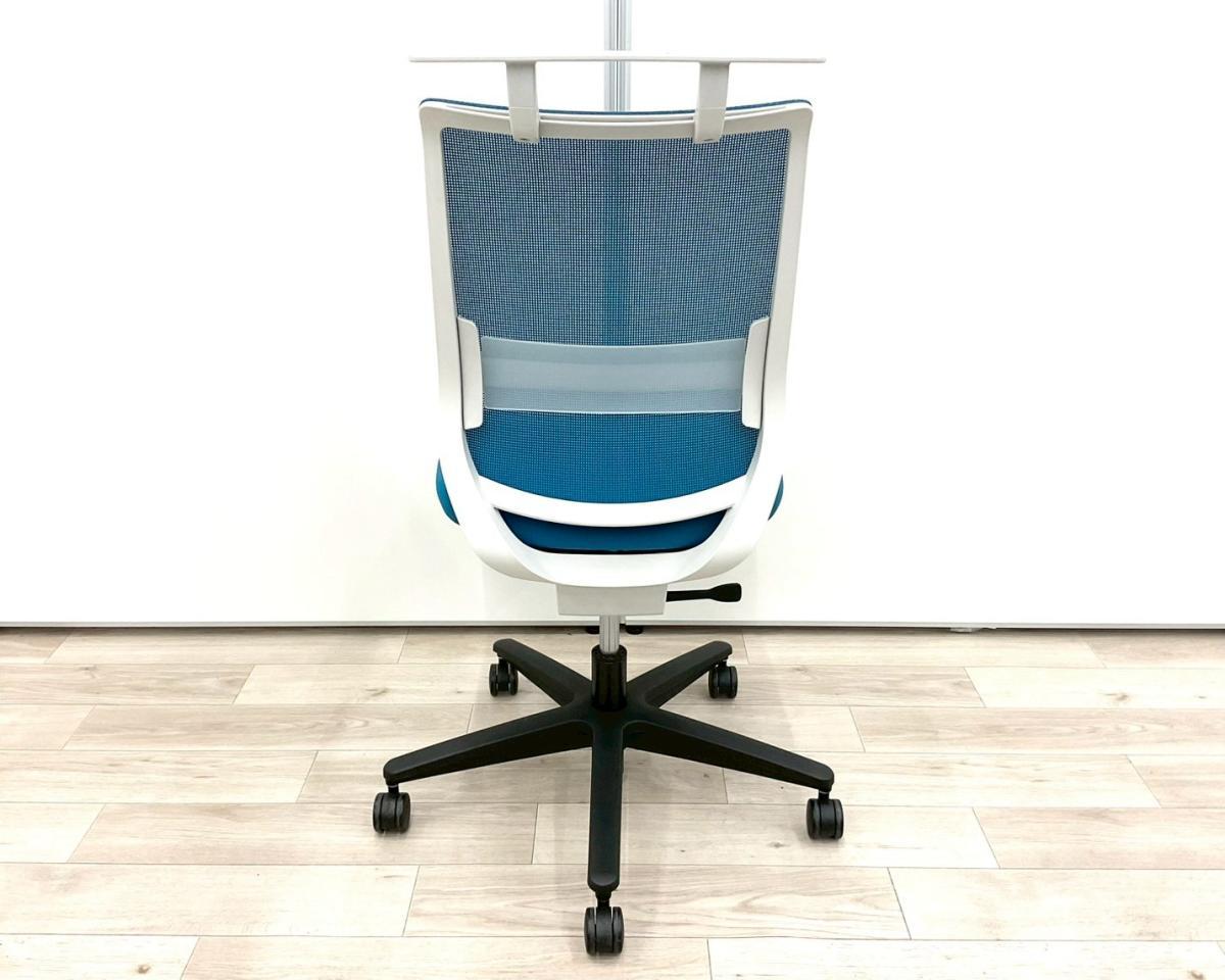 ■KOKUYO/コクヨ ■ミトラ ■ブルー×ホワイト ■ローバック ■背面メッシュ ■ハンガー付き ■ランバーサポート付き 【弊社使用欄:A01029923】