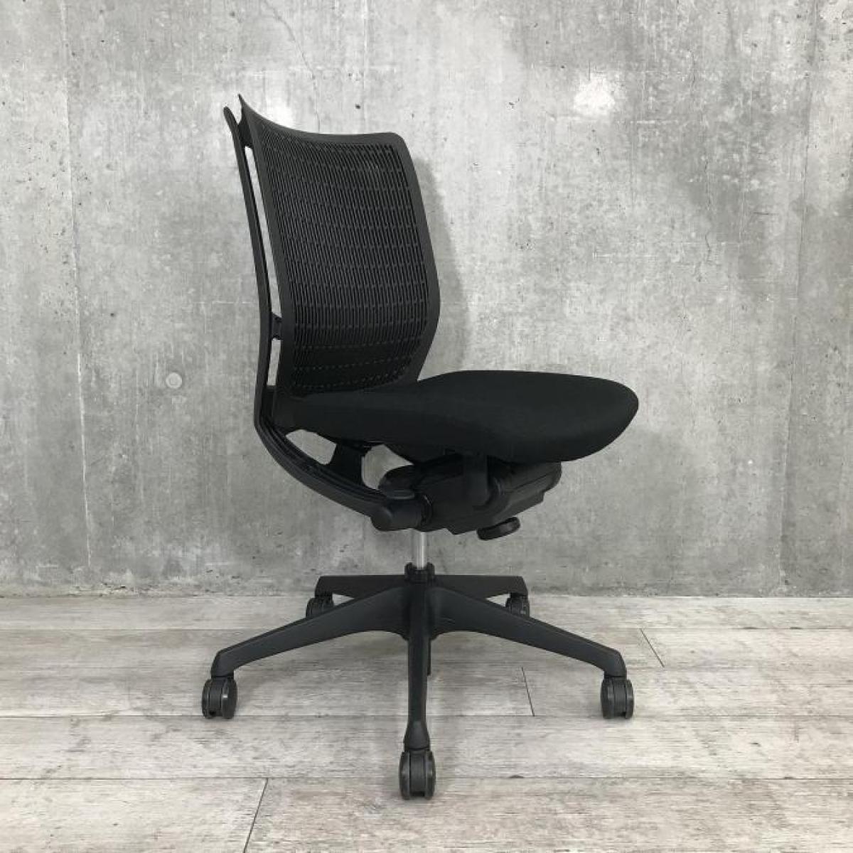 【人間工学に基づいた快適な座り心地!】■オカムラ(okamura)製 ヴィスコンテ(Visconte)チェア 肘無し ローバック ■背面ヌードタイプ ■座面ブラック ×背面ブラック