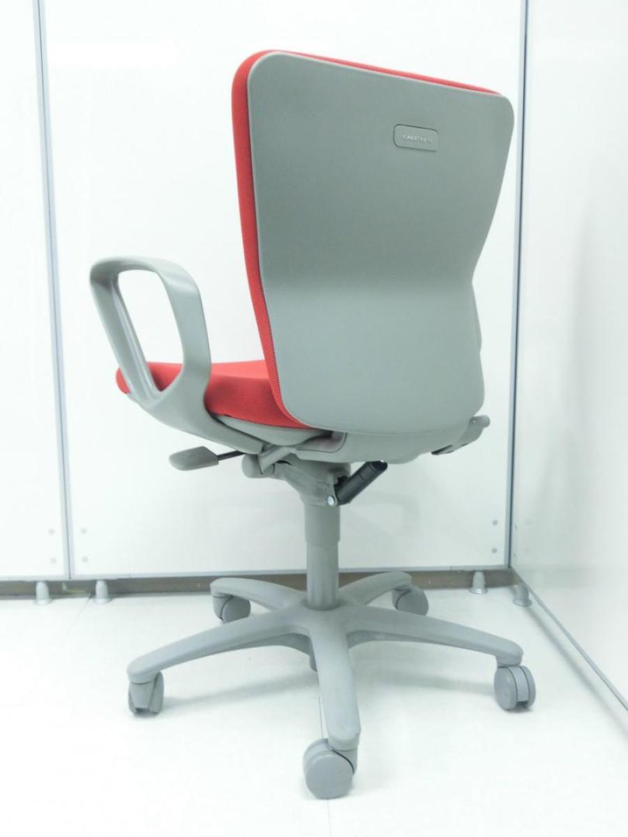 【長年愛されるロングセラー商品!厚めのクッションで疲れにくい!】■オカムラ(okamura)製 カロッツァ(Carrozza)チェア 肘付ローバック ■サークル肘 ■レッド×グレーシェル