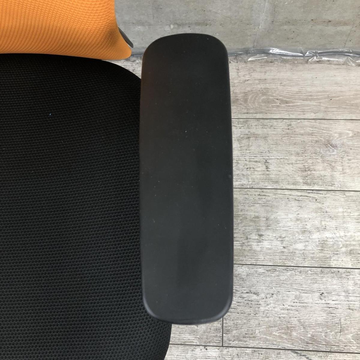 座り心地/フカフカ/高コスパ ■オカムラ(okamura)製 スラート(sulato)チェア 肘付き ローバック ■可動肘 ■ハンガー付き ■背面:オレンジ × 座面:ブラック