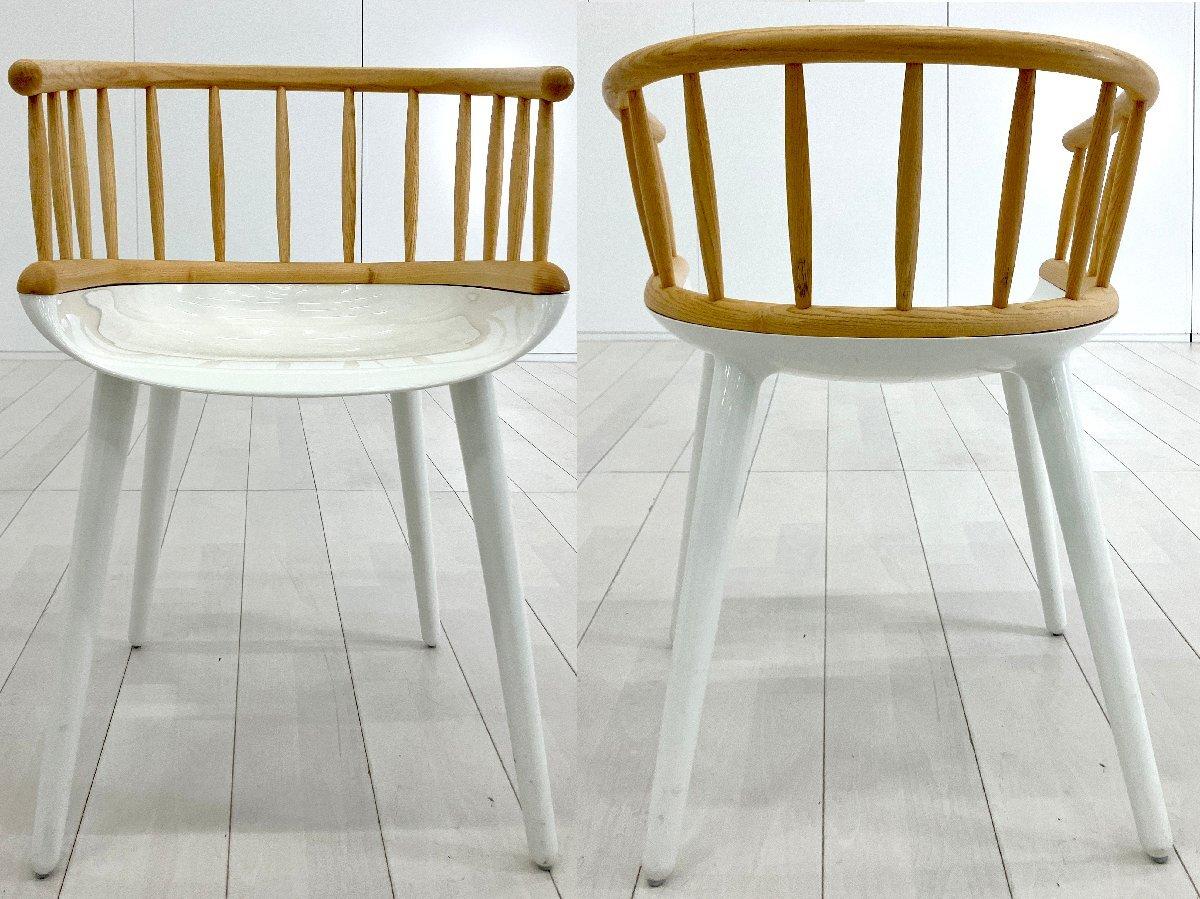 伝統的なウィンザーチェアの意匠をベースに、座面と脚部には樹脂、背とアームには無垢材を組み合わせたハイブリッドな一脚です。 クラシックな温もりと、MAGISらしい先進的な素材使いが自然に融合し、軽やかで現代的な表情に仕上がっています。
