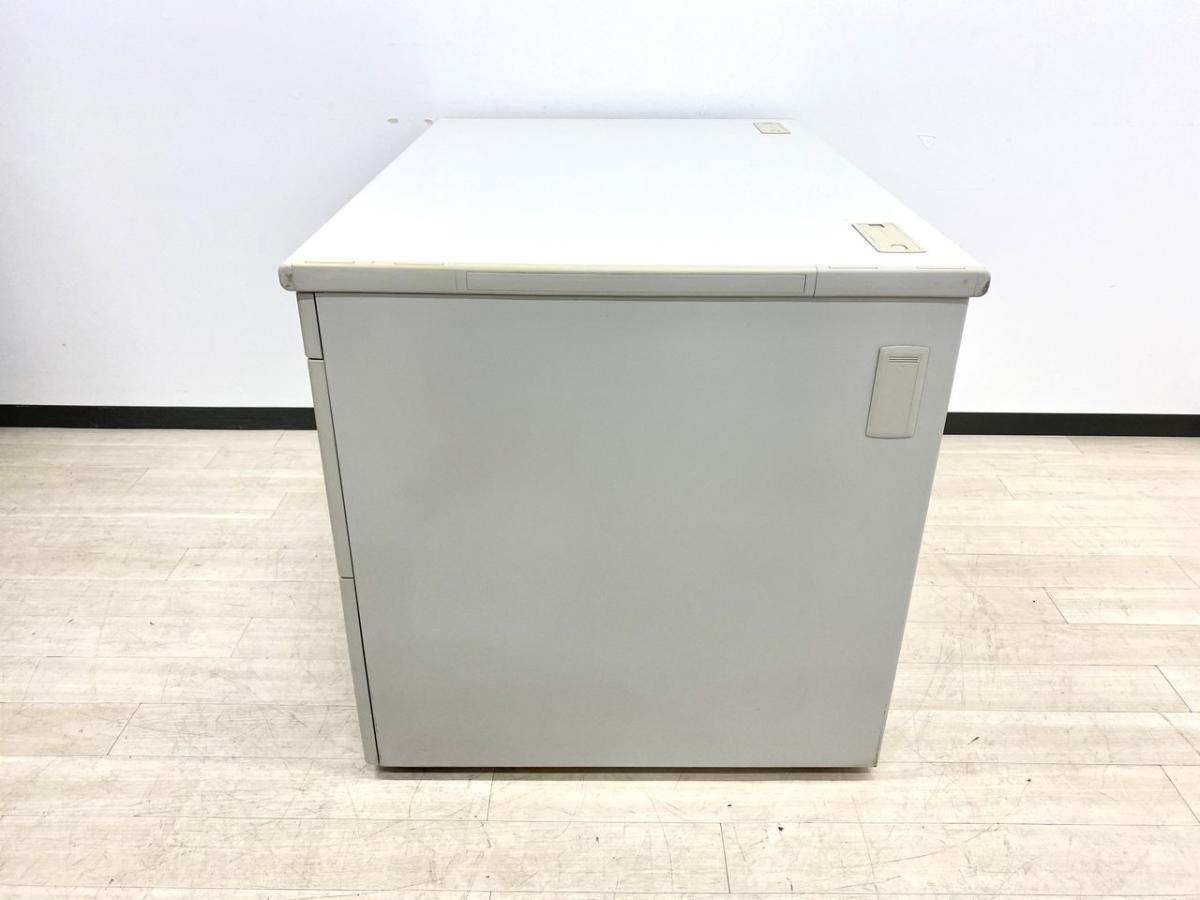 - 袖机のワゴンは、最下段がロング引出しになっており、従来より収納力120%アップ。