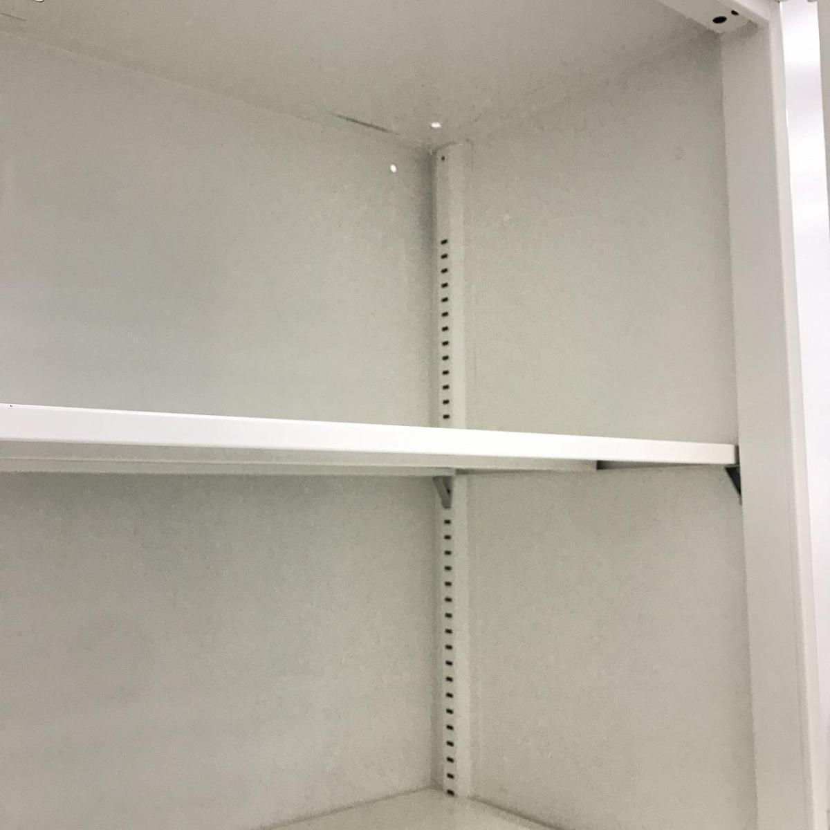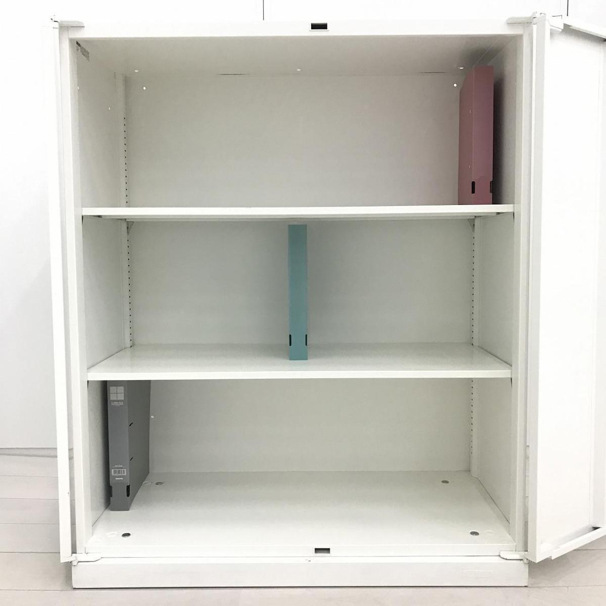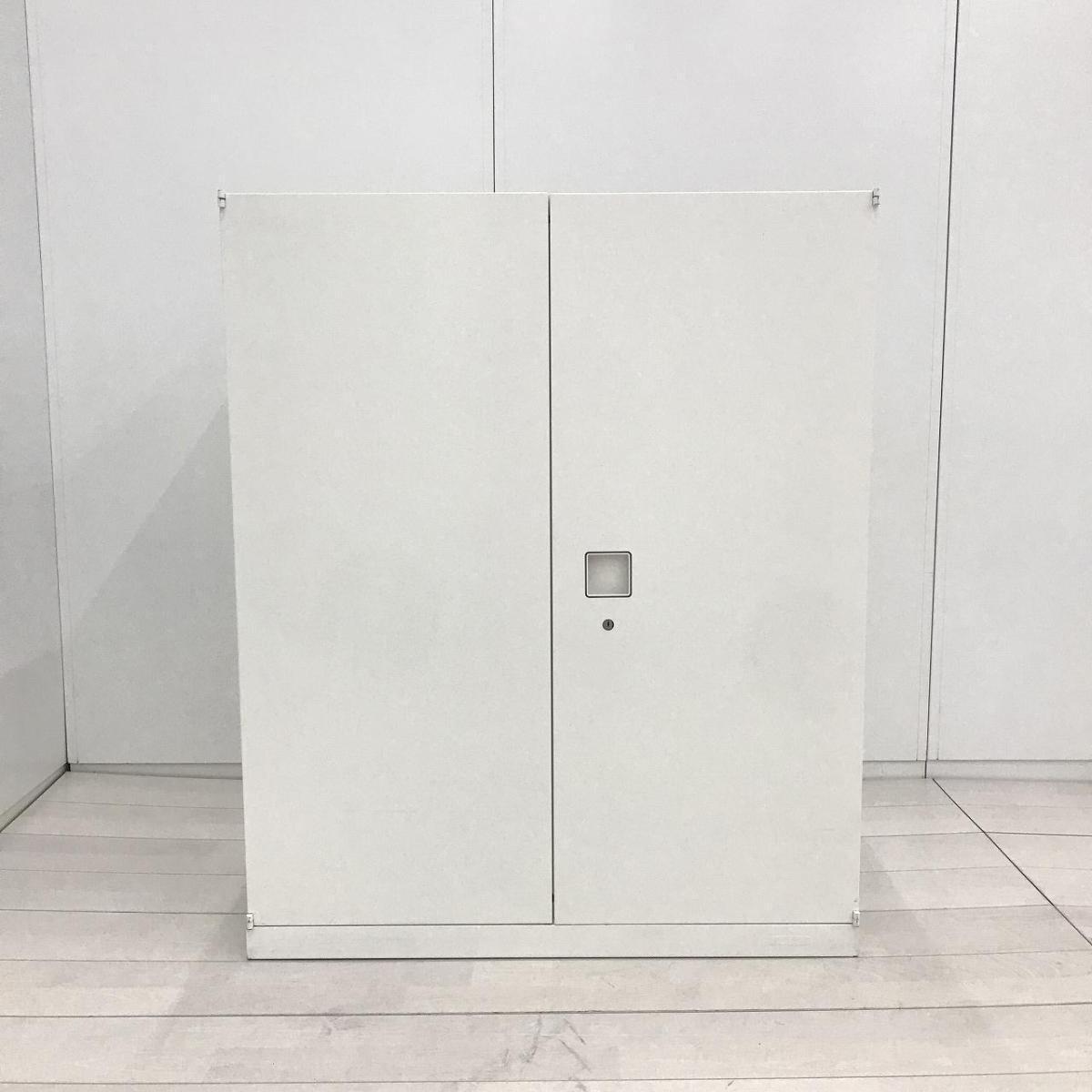 【在庫入替セール】オカムラ レクトライン 両開き書庫 シリンダー錠 鍵付き ホワイト 高さがH950とコンパクト目なサイズ感