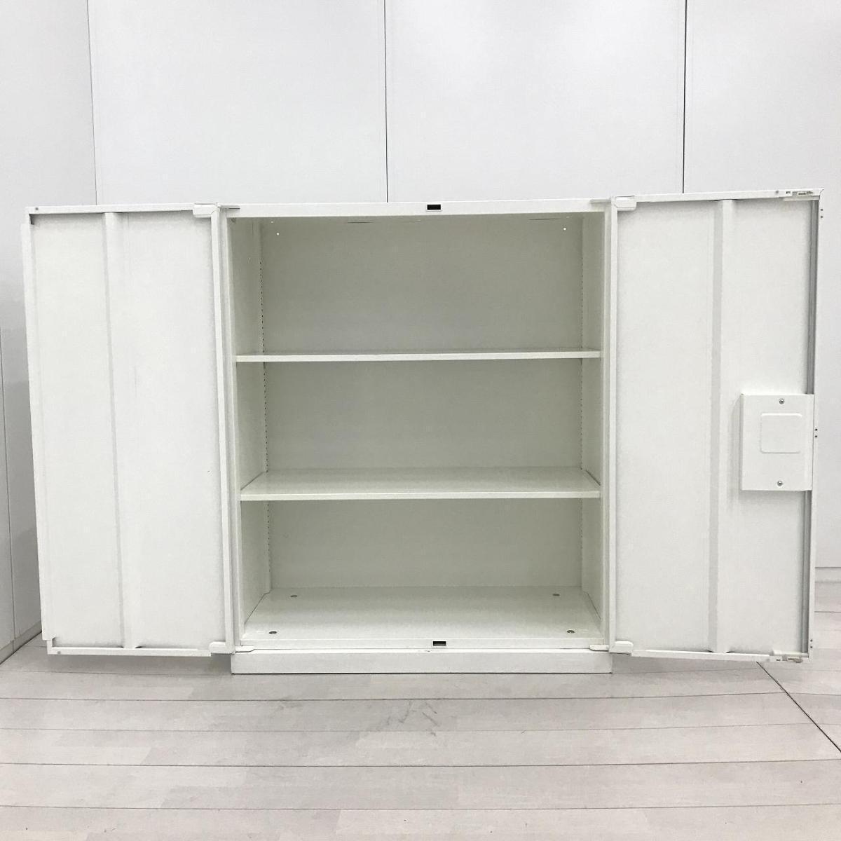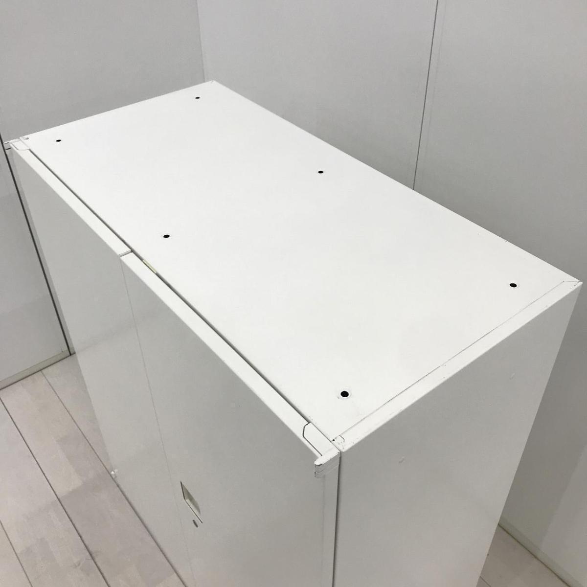 ★【T4】【商品入替のため、残り1台限り】【取っ手日焼け】オカムラ製 レクトライン ホワイト 天板付 シリンダー錠 オフィスの書類をスッキリ整理! 取っ手がどの方向からでも開くマルチハンドル! ローキャビネット 両開き書庫!!