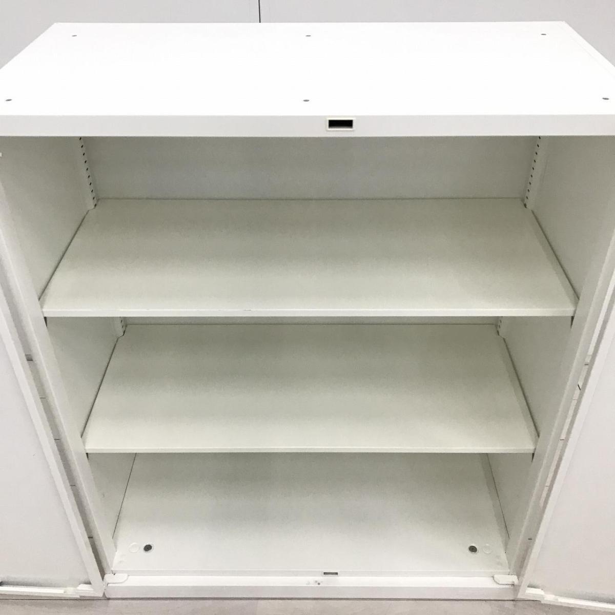 【オフィスの書類をスッキリ整理!オカムラの人気シリーズ書庫!取っ手がどの方向からでも開くマルチハンドル】■オカムラ(okamura)製 レクトラインシリーズ 両開き書庫 ローキャビネット ■シリンダー鍵 ■ホワイト 【弊社使用欄:A01057987】