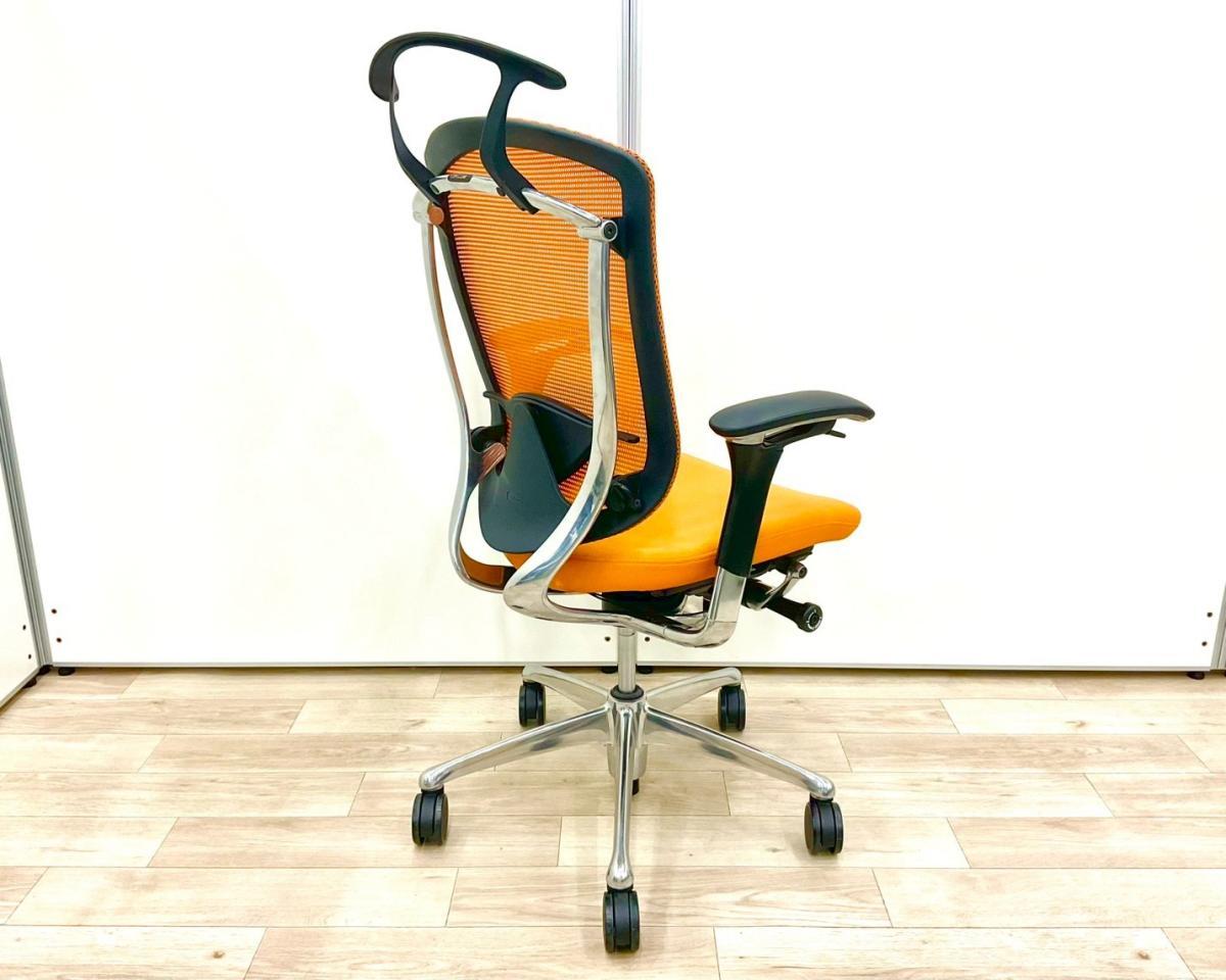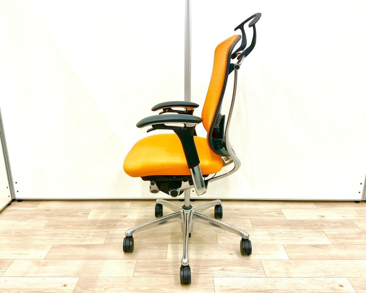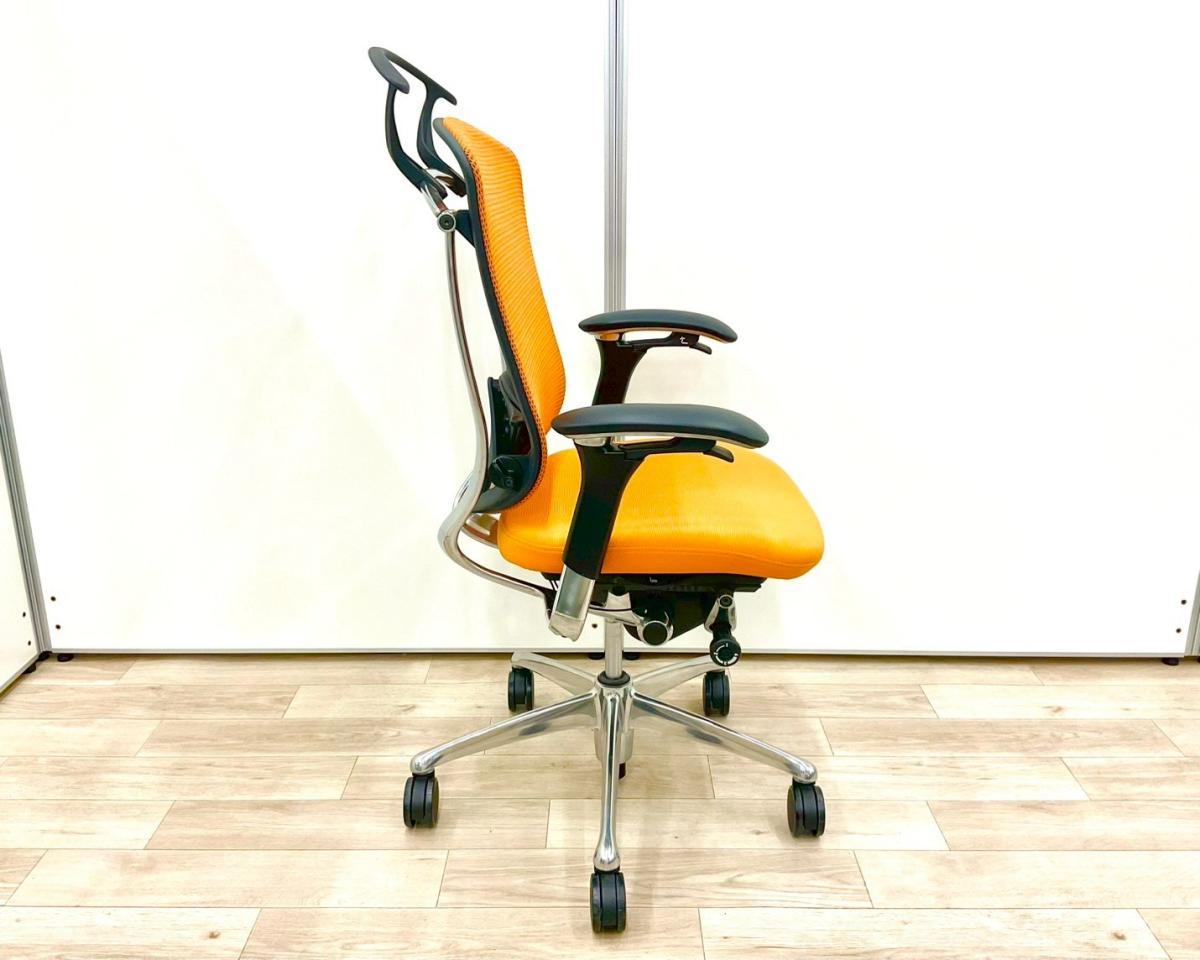 【上質なデザイン!高機能で快適な座り心地で快適キープ!】■オカムラ製 コンテッサチェア 可動肘付 オレンジ ハンガー付 ■ハイクラスな高級チェアで至福のひと時を!【okamura Contessa】