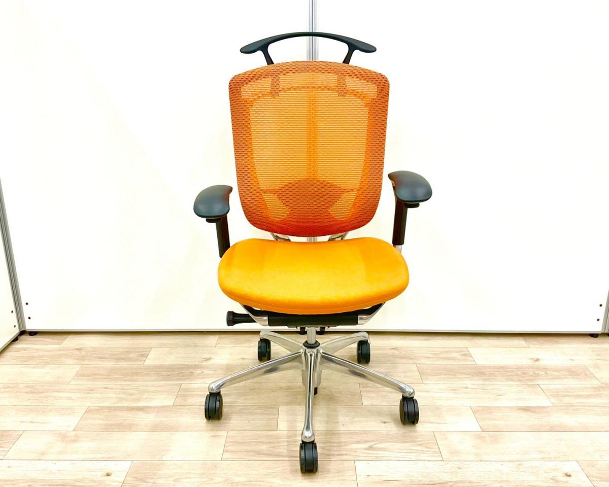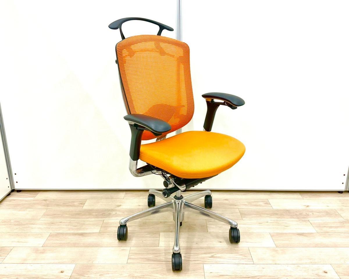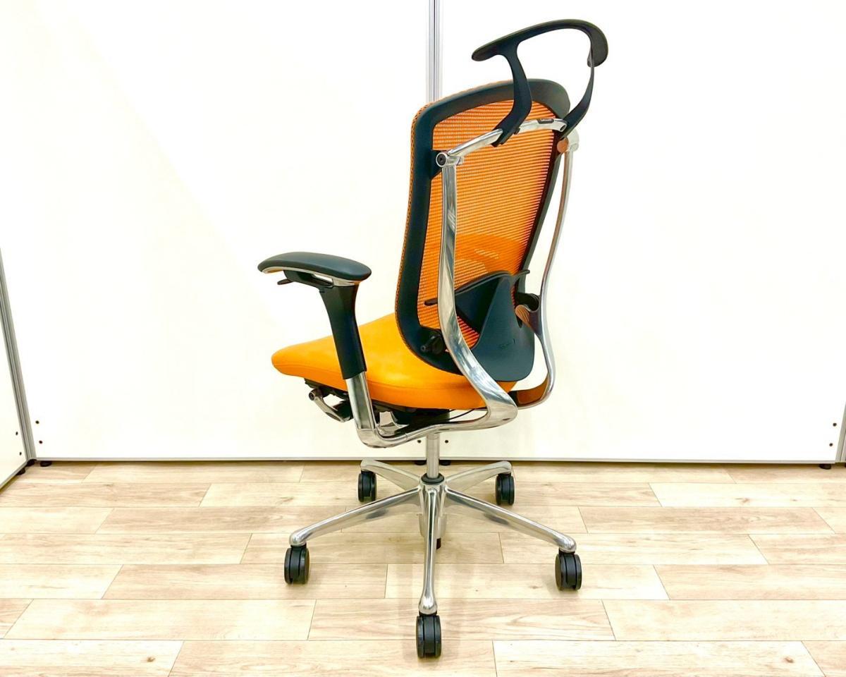 【上質なデザイン!高機能で快適な座り心地で快適キープ!】■オカムラ製 コンテッサチェア 可動肘付 オレンジ ハンガー付 ■ハイクラスな高級チェアで至福のひと時を!【okamura Contessa】