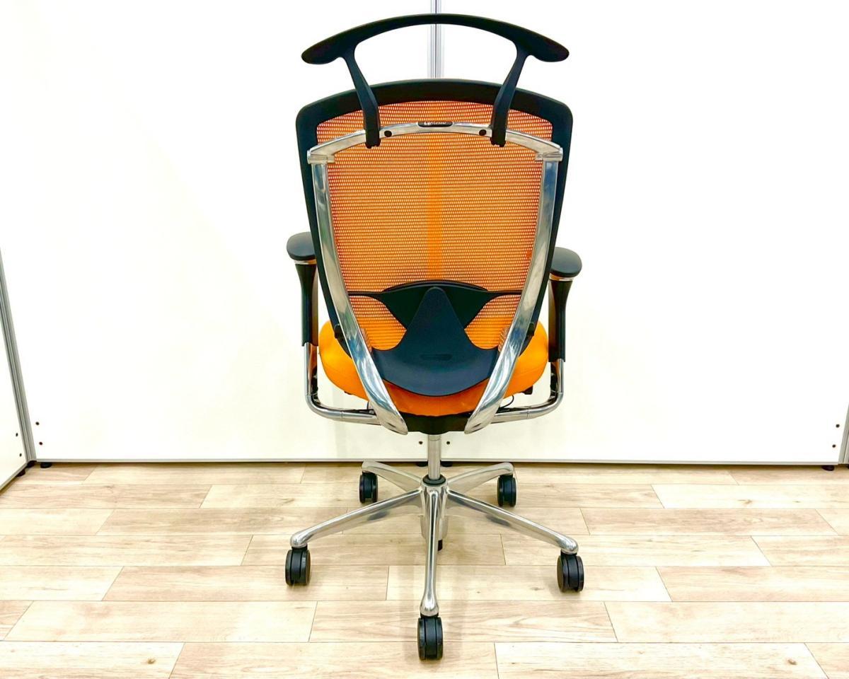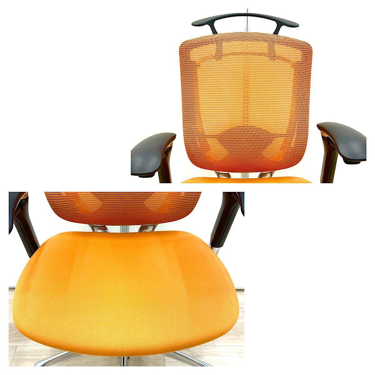 最高峰/高級チェア/高機能 カムラ(okamura)製 コンテッサ(Contessa)チェア 肘付ハイバック 背面メッシュ ■可動肘・ハンガー・ランバーサポート付き ■オレンジ×ブラックシェル