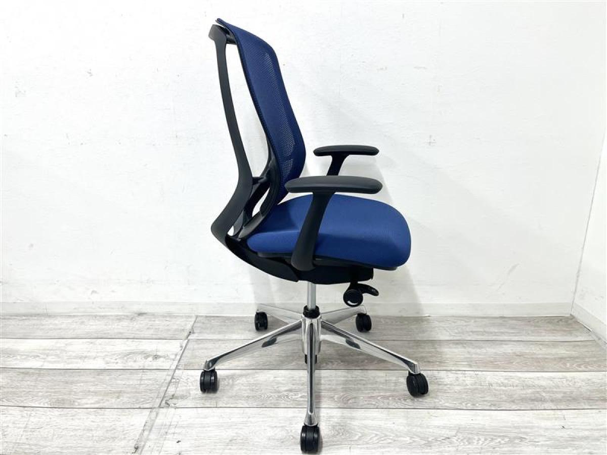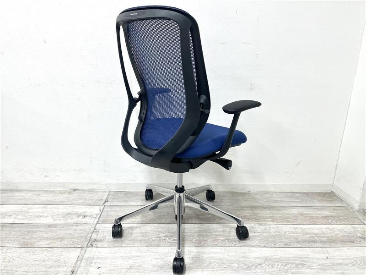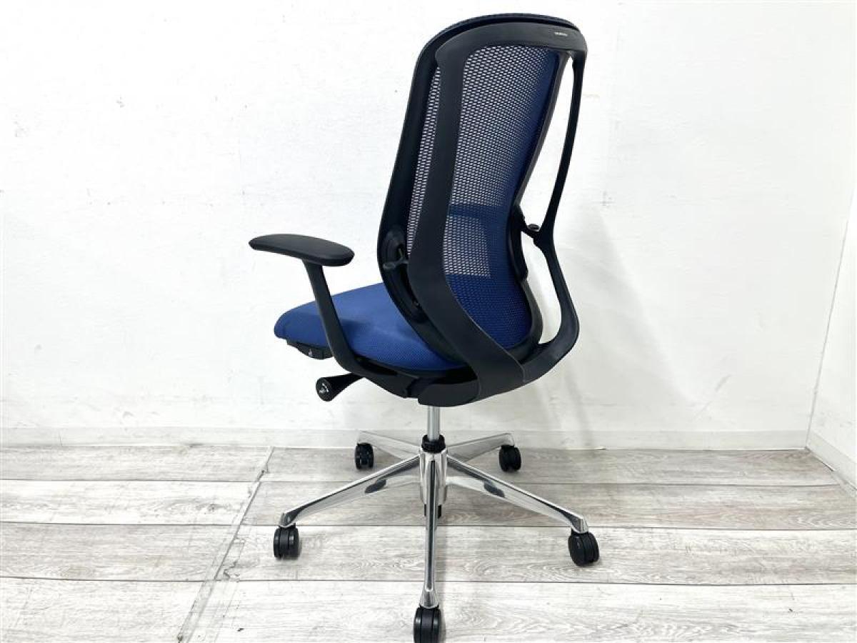 【在庫入れ替え】【訳あり品】ロッキング不良により固定不可となります。【三次元曲面が快適にフィットして背のカーブを変えられる新感覚のオフィスシーティング!】■オカムラ(okamura)製 シルフィ(Sylphy)チェア 肘付き ハイバック 背面メッシュ ■可動肘 ■インディゴブルー×ブラックシェル