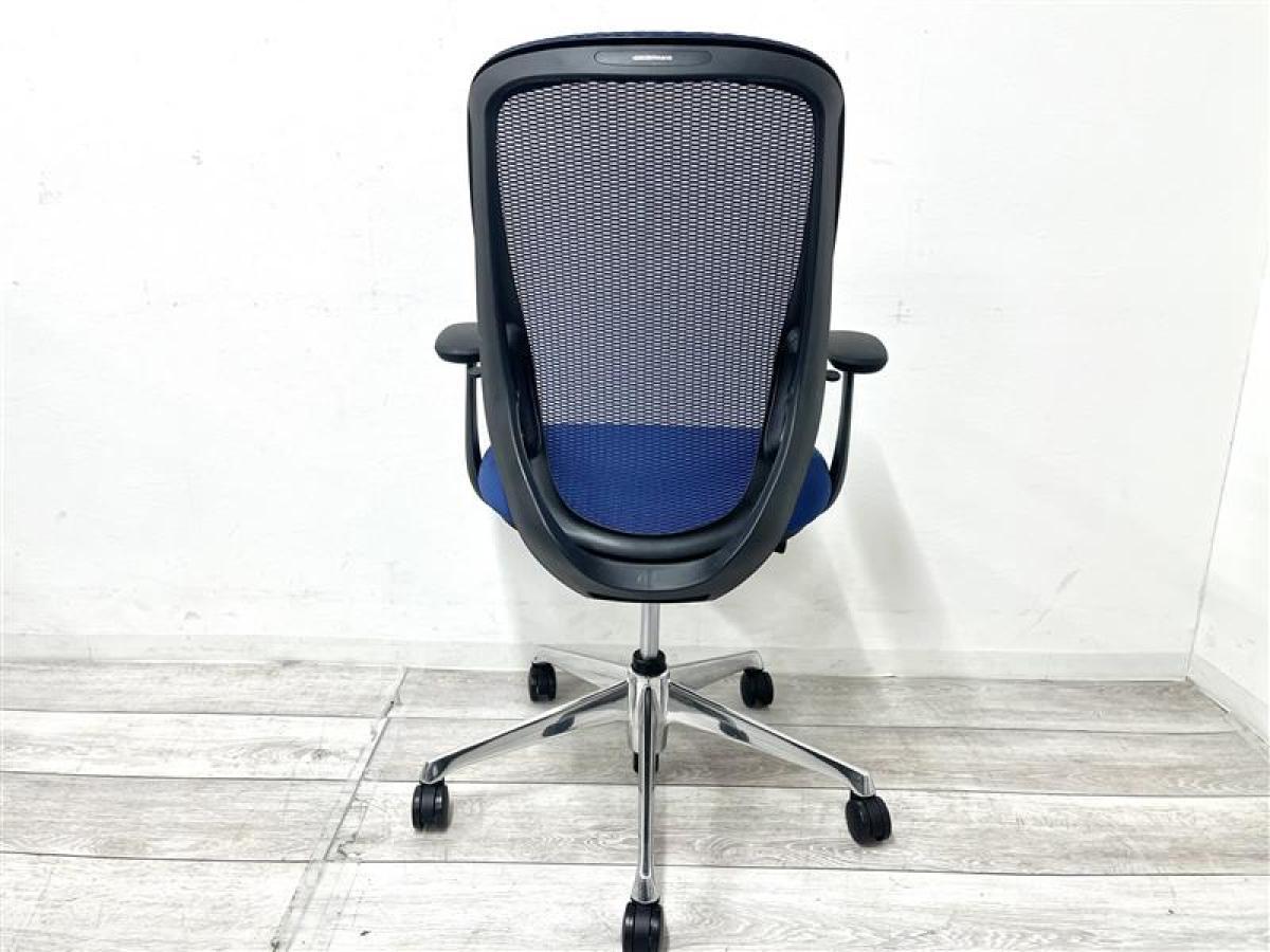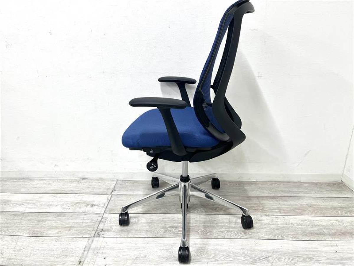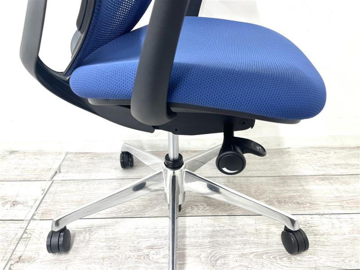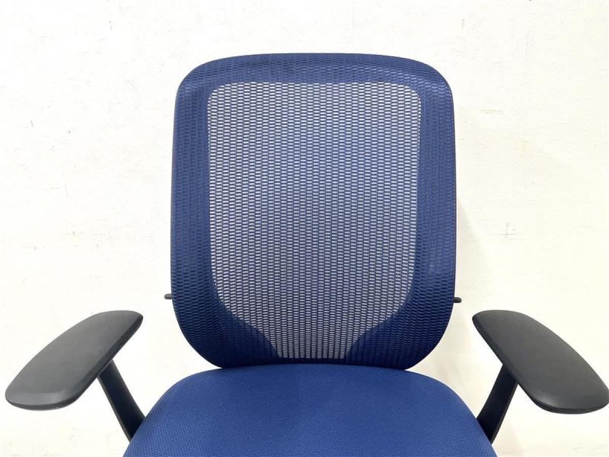 【在庫入れ替え】【訳あり品】ロッキング不良により固定不可となります。【三次元曲面が快適にフィットして背のカーブを変えられる新感覚のオフィスシーティング!】■オカムラ(okamura)製 シルフィ(Sylphy)チェア 肘付き ハイバック 背面メッシュ ■可動肘 ■インディゴブルー×ブラックシェル