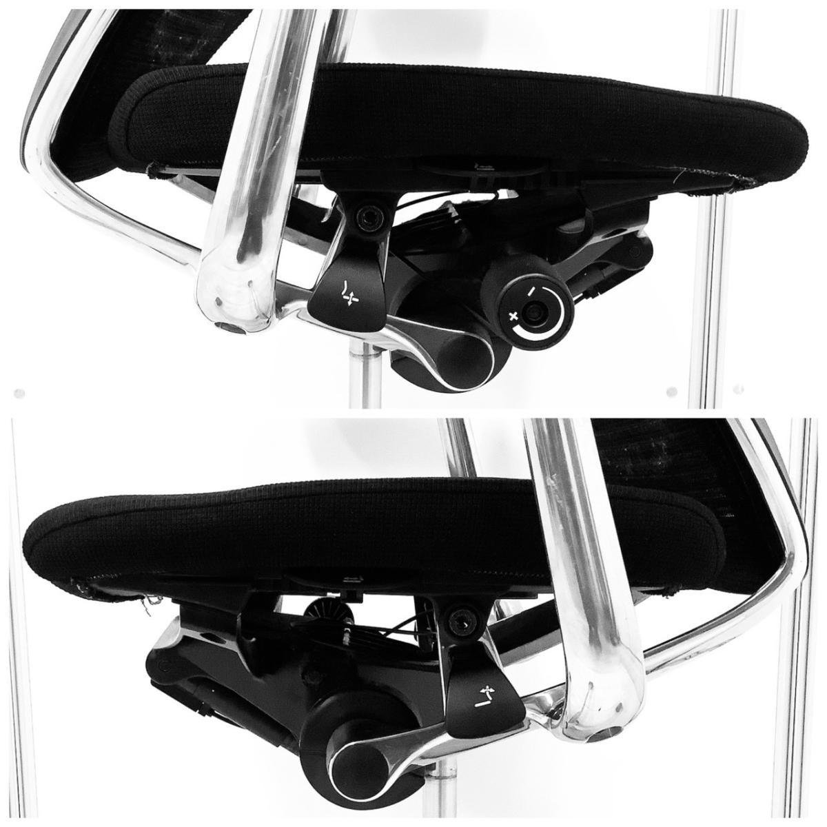もちろん座り心地もコンテッサの直系ですから快適です。座面の素材はクッションとメッシュの2タイプあります。私、個人的には座面の中心部分でも外側でもテンションが変わらないクッション素材が、足を閉じても開いても快適なので推しです!"