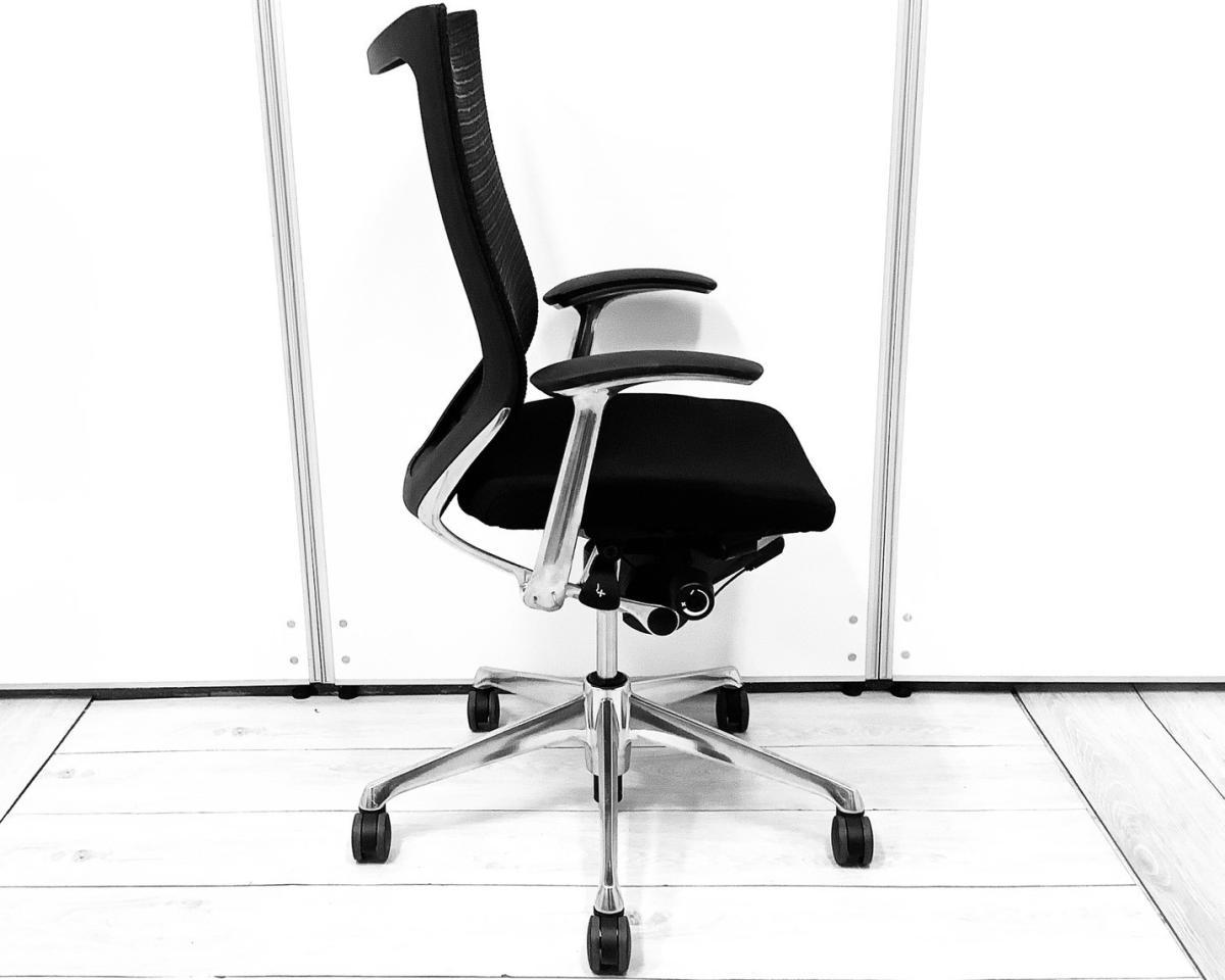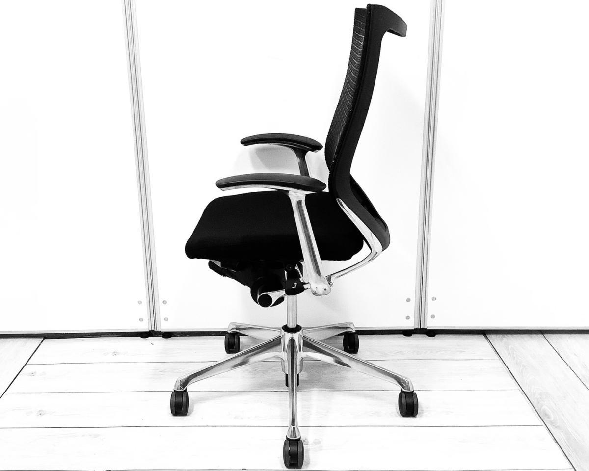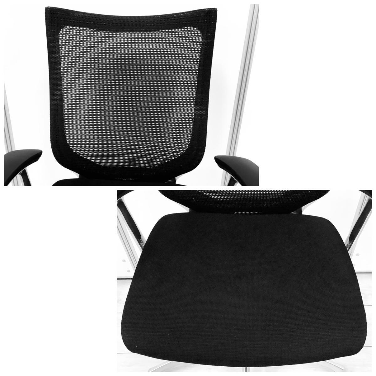 【肘付(固定肘)/クッション座面/ランバーサポート無】スタンダードメッシュ 高級感のある会議室 ブラックボディ アームレスト付 デザインアーム 固定肘 オススメ(おすすめ) 大人気 ・Okamura/オカムラ ・Baron/バロン ※横浜本店撮影画像※ 実物ガスシリンダー2段タイプ- 横浜本店